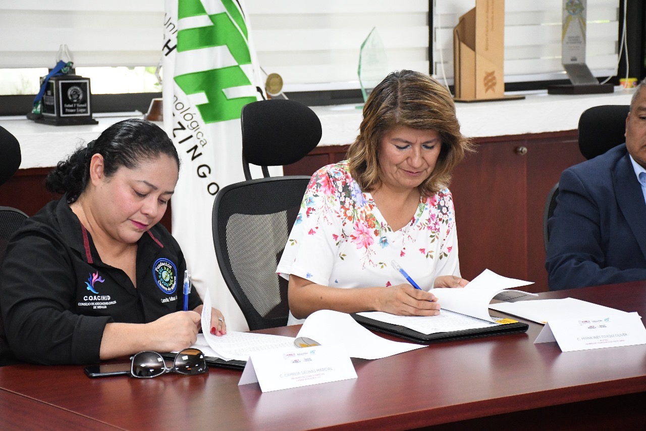 HUEJOTZINGO, Pue.- La rectora de la Universidad Tecnológica de Huejotzingo (UTH), Mirna Toxqui Oliver, destacó que el trabajo coordinado con las asociaciones civiles es fundamental para obtener mejores resultados en beneficio de la comunidad universitaria y de la sociedad en general. Lo anterior, durante la firma de convenio con la organización Cadena de Milagros A.C., del estado de Hidalgo.