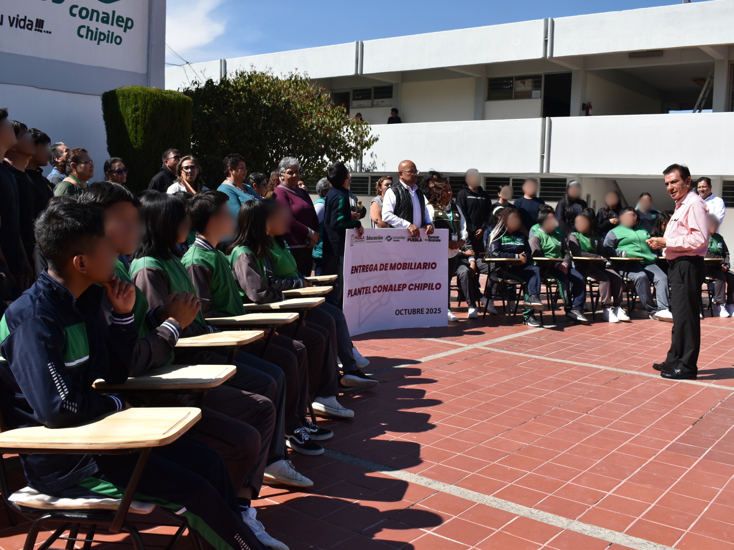 - El director general, Juan Antonio Martínez Martínez entregó en el Plantel Chipilo los trabajos de rehabilitación de las instalaciones y mobiliario escolar.