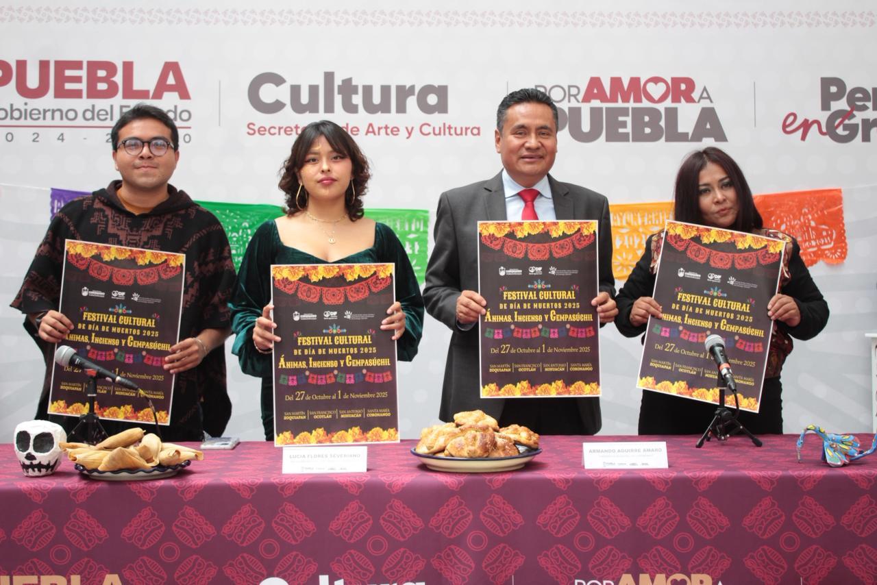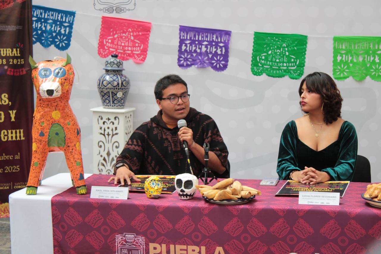 CIUDAD DE PUEBLA, Pue.- La Secretaría de Arte y Cultura del gobierno encabezado por Alejandro Armenta, y el Ayuntamiento de Coronango presentó la primera edición del Festival “Ánimas, incienso y cempasúchil”, el cual se desarrollará del 27 de octubre al 1 de noviembre en las juntas auxiliares de Santa María Coronango, San Martín Zoquiapan, San Francisco Ocotlán y San Antonio Mihuacán, pertenecientes al municipio.