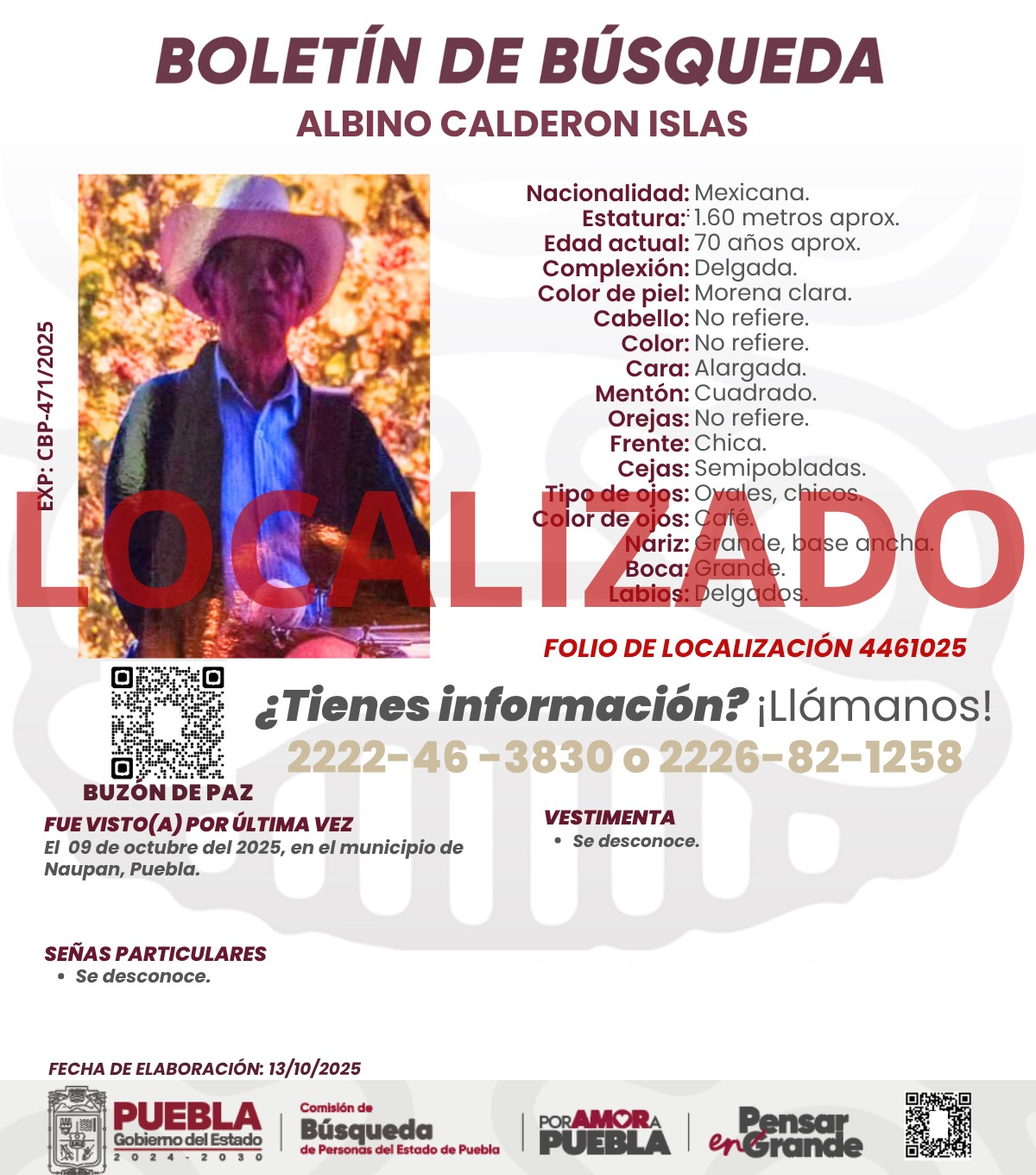Con esta localización, ya suman 22 las personas fallecidas a consecuencia de las lluvias registradas en Puebla y aún permanecen dos personas desaparecidas con ficha activa.