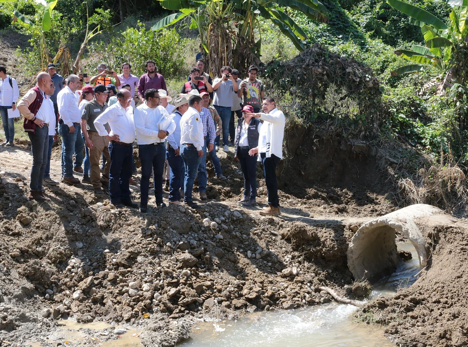 - El gobernador Alejandro Armenta, acompañado por integrantes de su gabinete recorrió las zonas afectadas de las comunidades de La Ceiba y La Máquina.