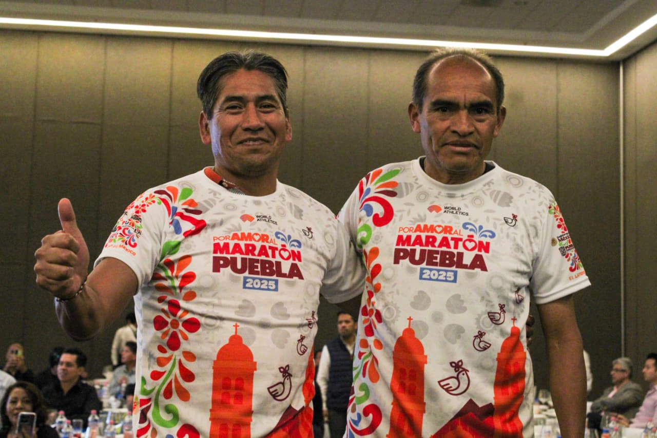 Las playeras que portarán los corredores se mostraron en dos tonalidades: blanco (para las distancias de 5 y 10 kms) y negro (21 y 42.195 kms), con símbolos característicos y representativos del estado, mientras que la medalla oficial de este 2025, incorpora elementos únicos que reflejan la identidad de Puebla.