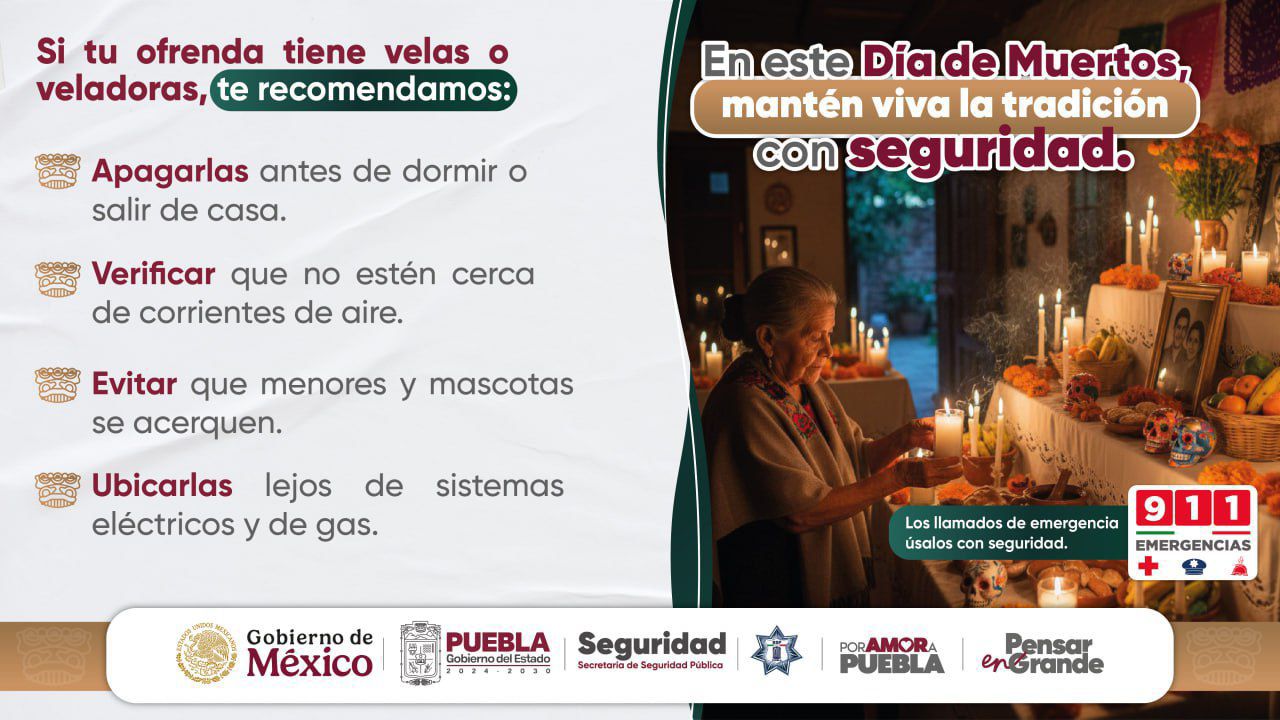 Desde este martes 28 de octubre y hasta el domingo 2 de noviembre, la Policía Preventiva, Policía Turística, Policía de Caminos y Bomberos reforzarán los patrullajes aéreos y terrestres, así como las labores de proximidad, en panteones, mercados, centros comerciales, Pueblos Mágicos, municipios con vocación turística y carreteras.