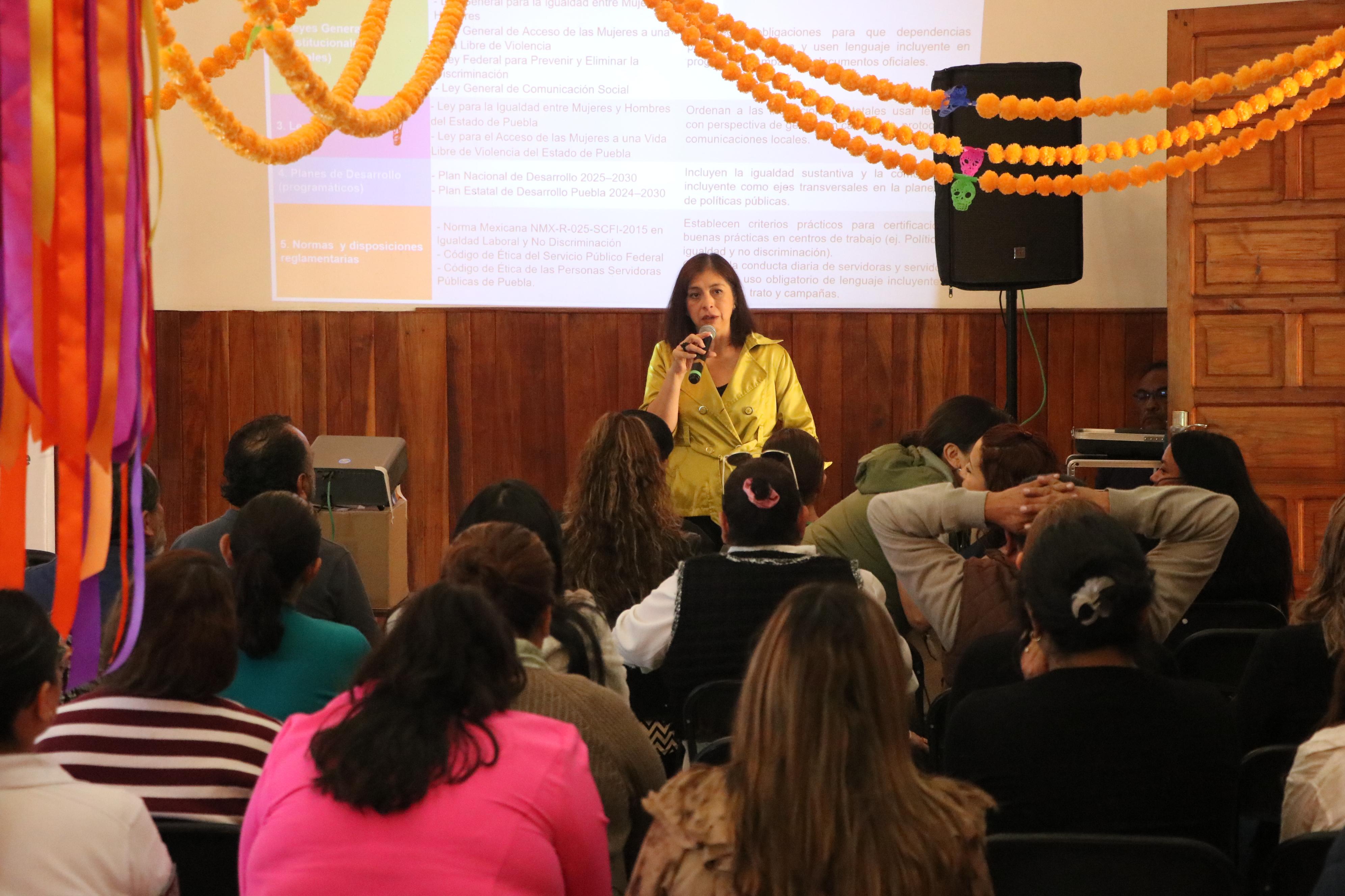 SAN MARTÍN TEXMELUCAN, Pue.- Con el firme objetivo de eliminar brechas de desigualdad, el Gobierno del Estado de Puebla, a través de la Secretaría de las Mujeres, llevó a cabo el taller de Lenguaje Incluyente y No Sexista “Palabra por Palabra: Puebla Construye Igualdad”.