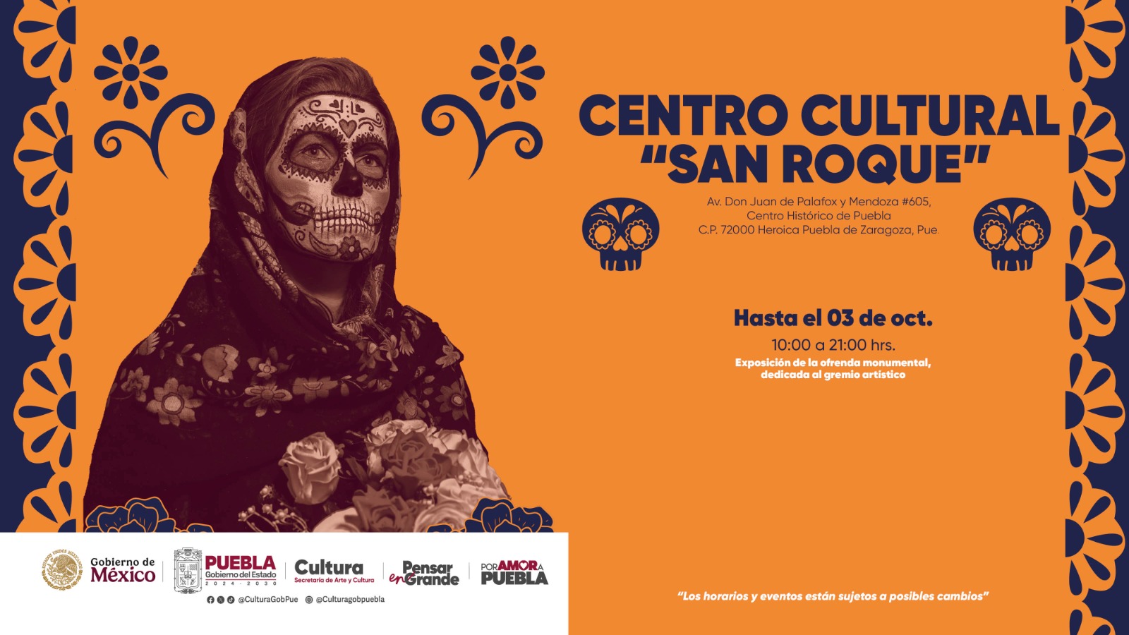 Para mayores informes de las actividades que realiza la Secretaría de Arte y Cultura, se pueden visitar las redes sociales oficiales: Facebook: @CulturaGobPue, Instagram: @culturagobpuebla, X: @CulturaGobPue.