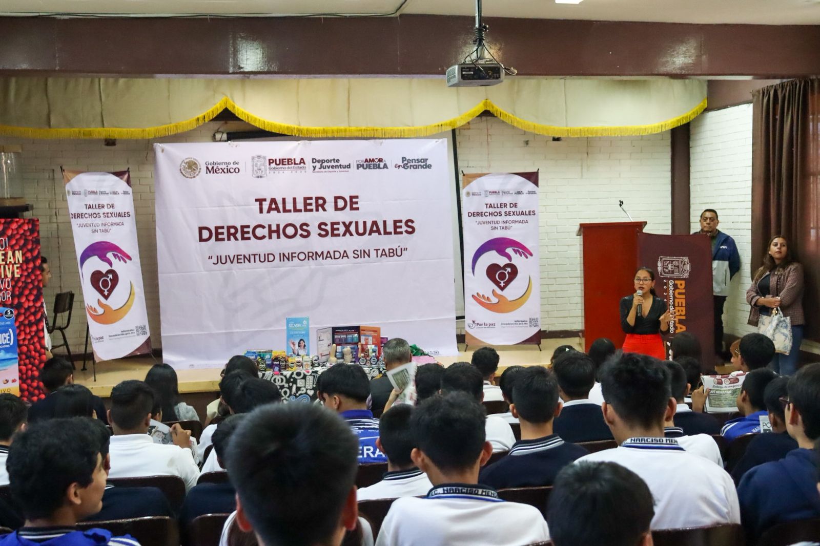 Posteriormente, en la ciudad de Puebla, se efectuó el taller “Juventud informada sin tabú: Derechos Sexuales y Reproductivos de las juventudes”, desarrollado en la Escuela Secundaria No. 4 Narciso Mendoza, con la participación de 100 alumnas y alumnos.