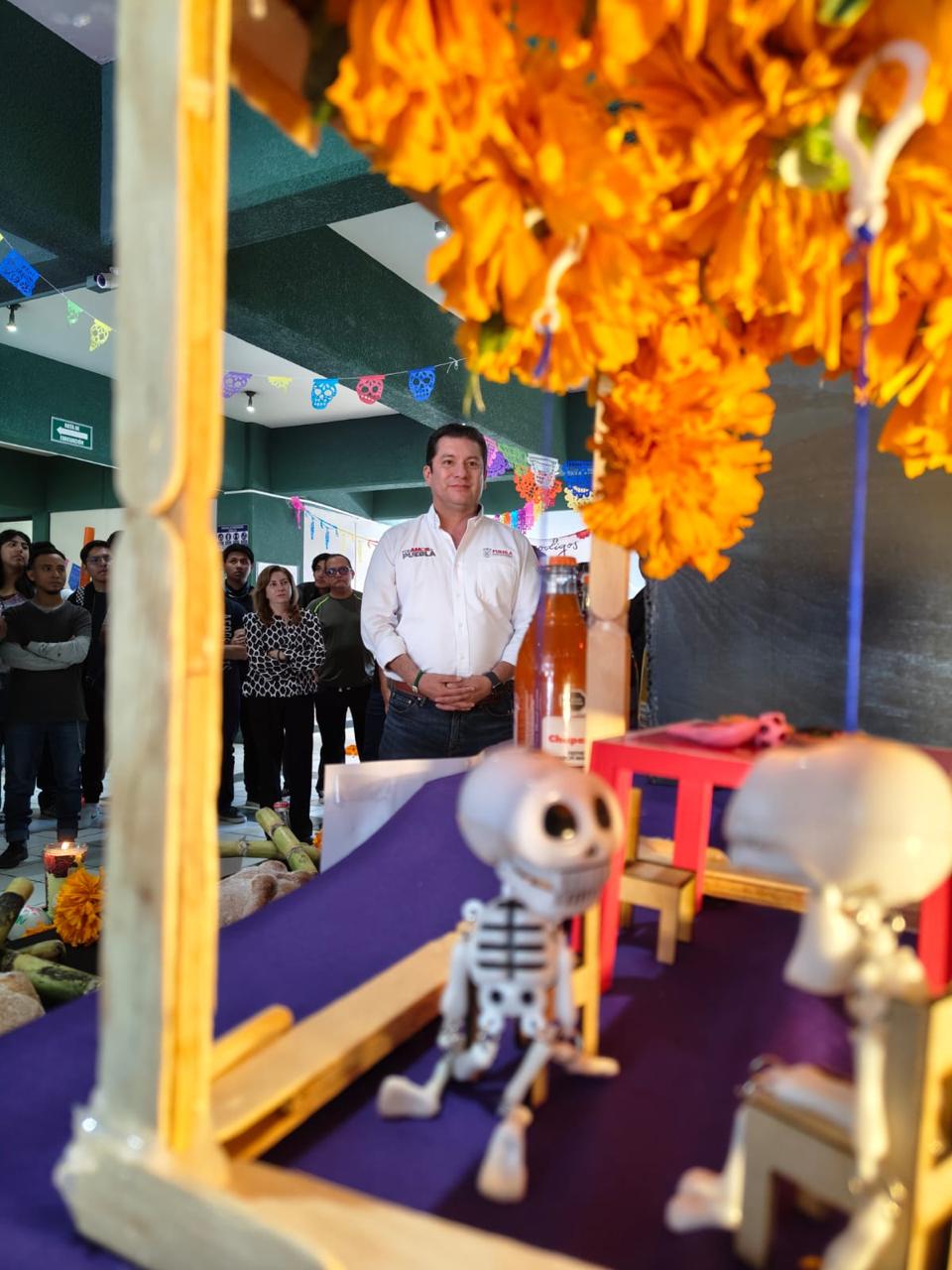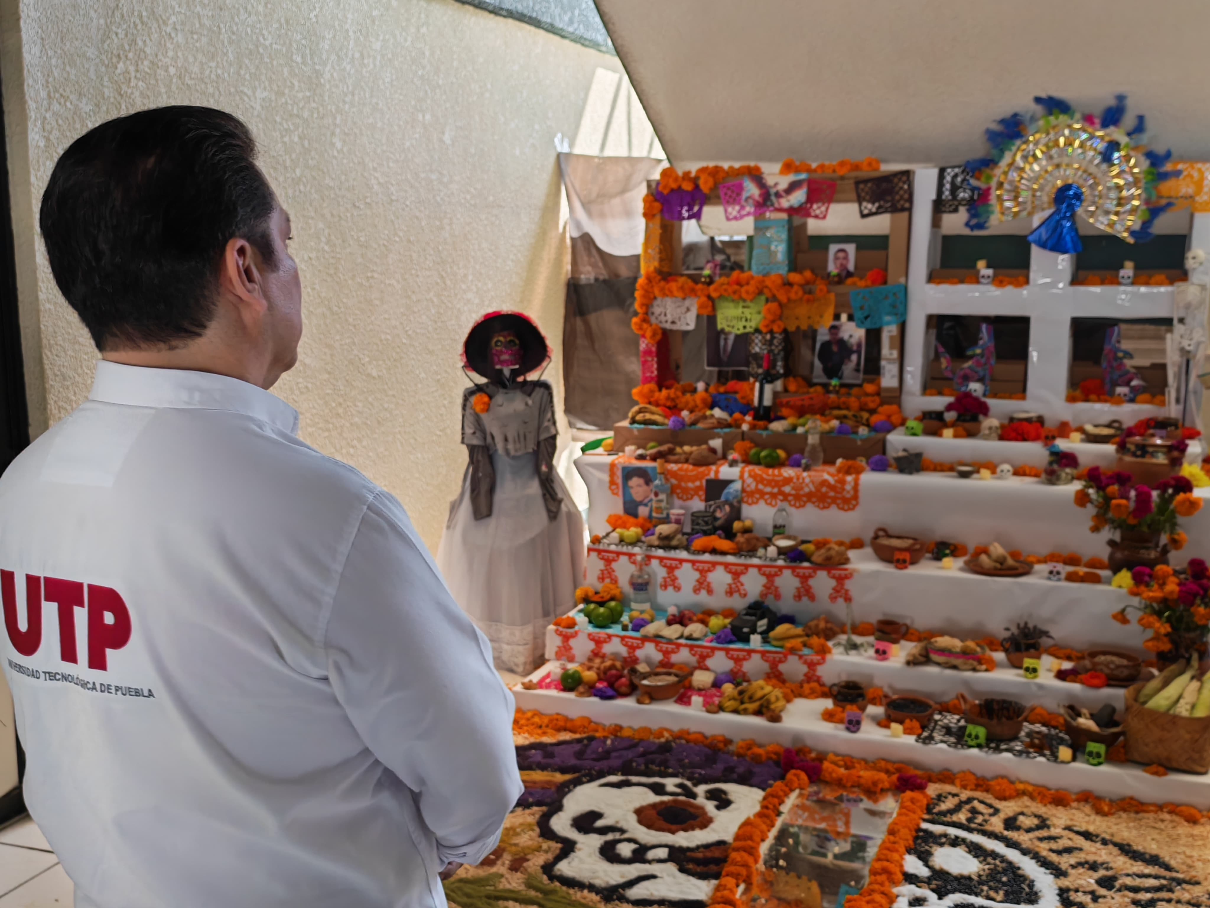 CIUDAD DE PUEBLA, Pue. — En el marco de la conmemoración del Día de Muertos, el rector de la Universidad Tecnológica de Puebla (UTP), Jesús Morales Rodríguez, recorrió las ofrendas elaboradas por las y los estudiantes de distintas carreras, quienes demostraron creatividad, talento e innovación, al integrar elementos tecnológicos en sus trabajos y combinar la tradición con los conocimientos adquiridos en su formación académica.
