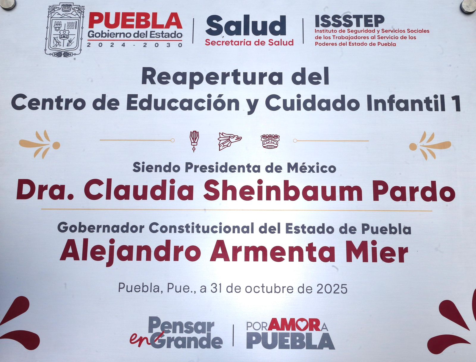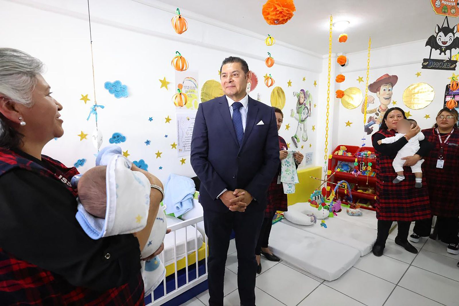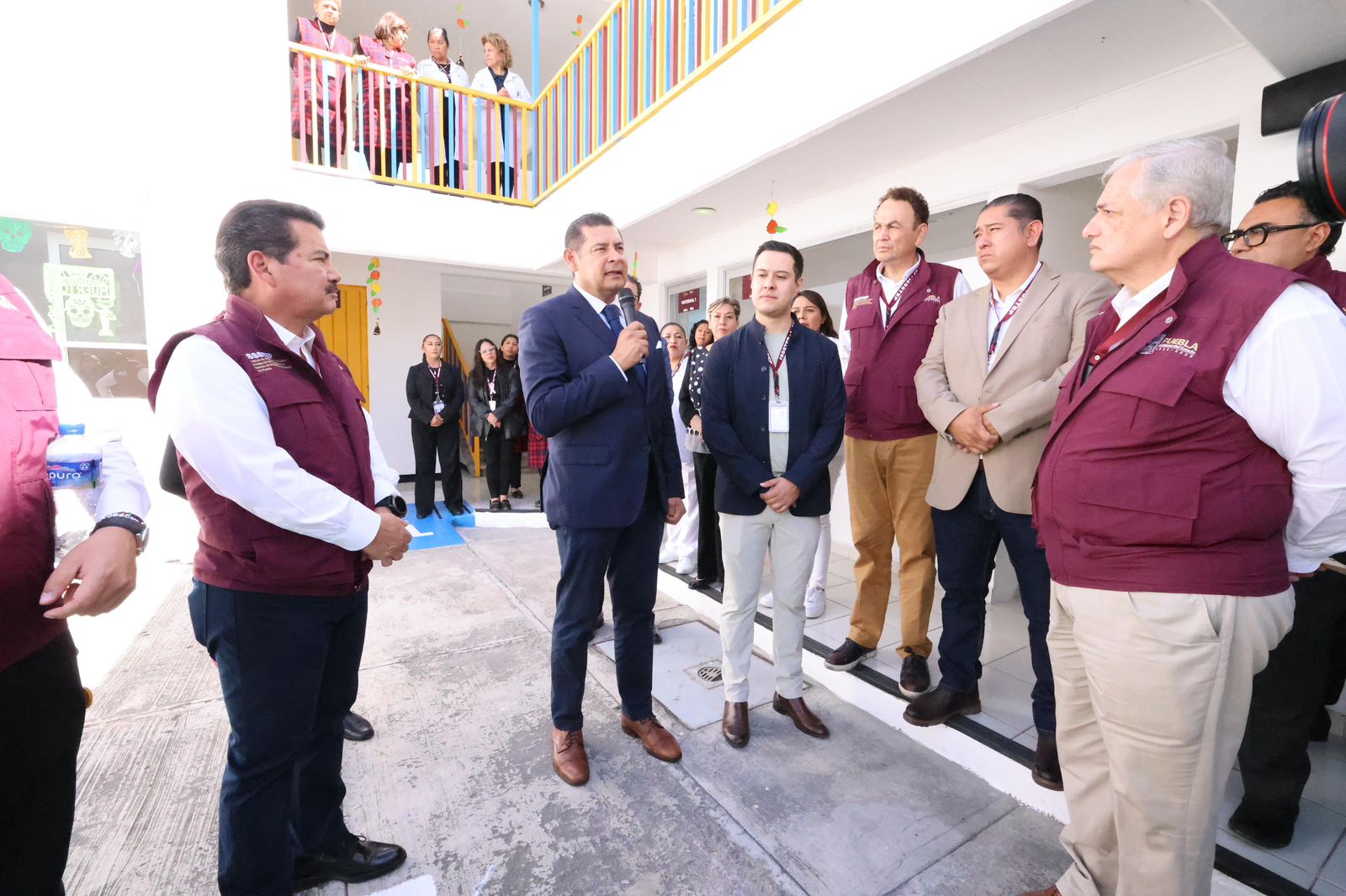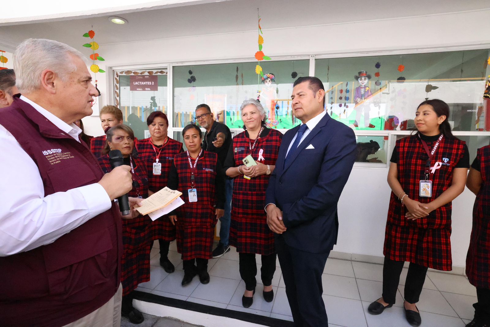 Acompañado por el director general del Instituto de Seguridad y Servicios Sociales de los Trabajadores al Servicio de los Poderes del Estado de Puebla (ISSSTEP), Luis Antonio Godina Herrera; el secretario de Salud, Carlos Alberto Olivier Pacheco; y el secretario general del sindicato, Ángel Vázquez Flores, el mandatario develó la placa de reapertura y recorrió las áreas renovadas, entre ellas las de lactantes, maternales, cocina, banco de leche, área séptica, lavandería, salones de clases, psicología, trabajo social, dirección y patio de juegos, todas equipadas con materiales nuevos y señalización clara para mayor seguridad.