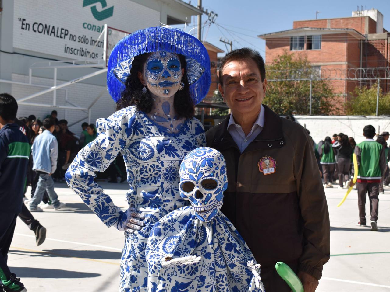 CIUDAD DE PUEBLA, Pue.- A fin de fomentar y conservar las tradiciones para fortalecer la identidad cultural entre la comunidad educativa, el Colegio de Educación Profesional Técnica del Estado de Puebla (Conalep), llevó a cabo actividades artísticas con motivo del Día de Muertos en diferentes planteles de la entidad.