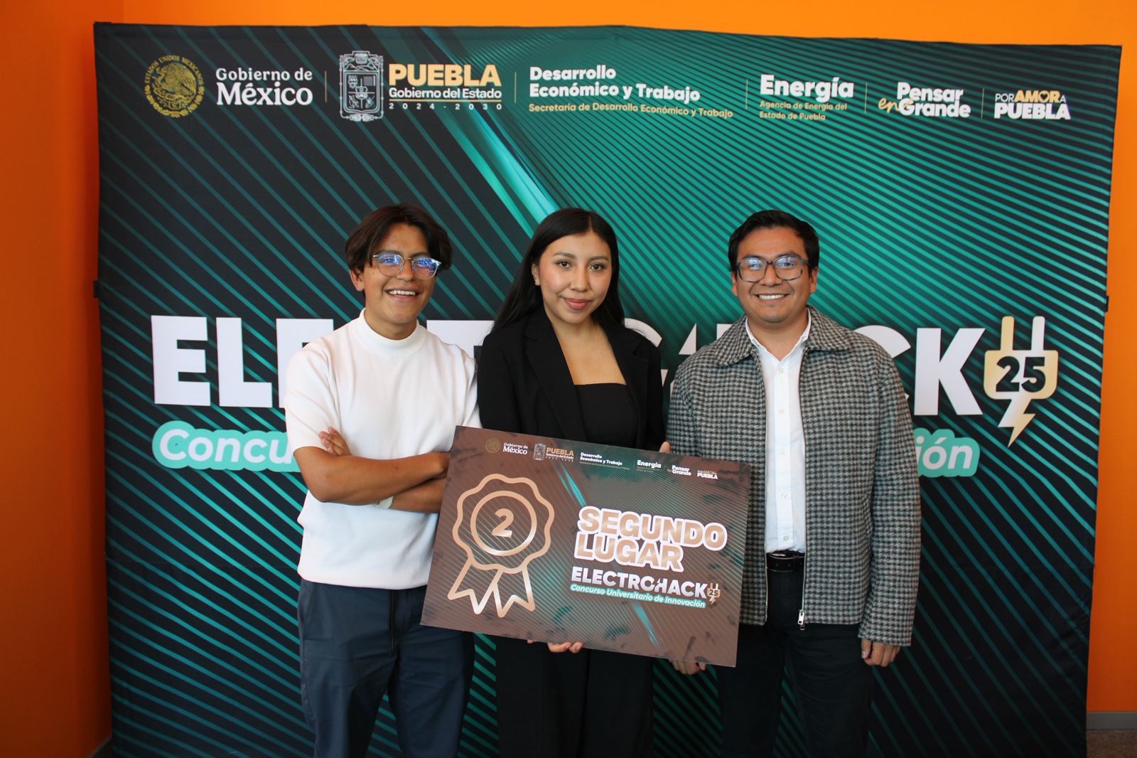 –El equipo que obtuvo el primer lugar está integrado por estudiantes de la Universidad del Valle de Puebla y la Benemérita Universidad Autónoma de Puebla con el proyecto "Microhidrogeneración y tratamiento de agua en el río Apulco".
