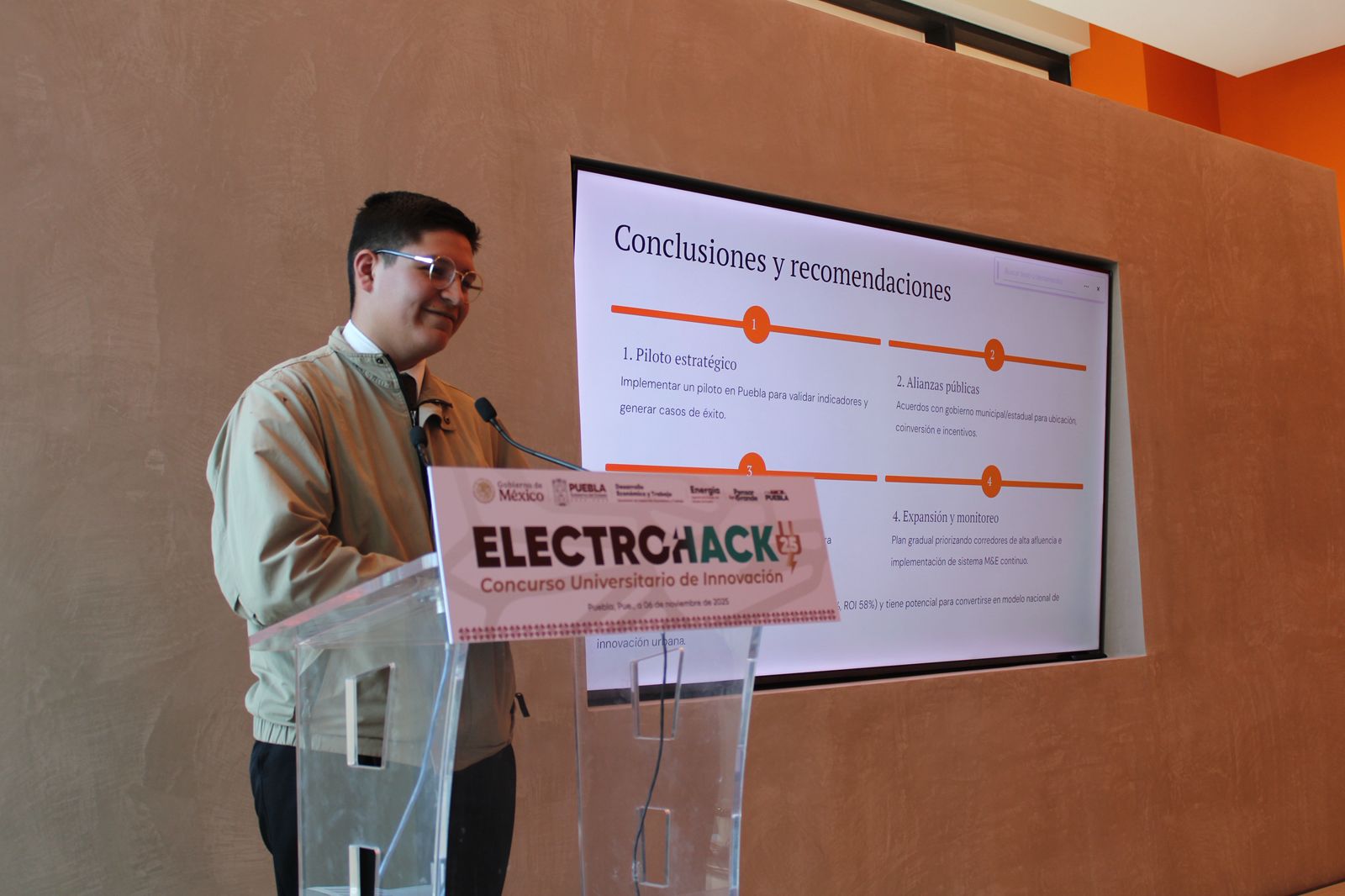 CIUDAD DE PUEBLA, Pue.-Con el respaldo del gobernador Alejandro Armenta, la juventud universitaria en Puebla se consolida como motor de cambio hacia un futuro sostenible e innovador. Así se demostró en la cuarta edición del concurso de innovación “ElectroHack”, un espacio donde estudiantes de distintas instituciones de nivel superior presentaron sus proyectos ante un comité evaluador.