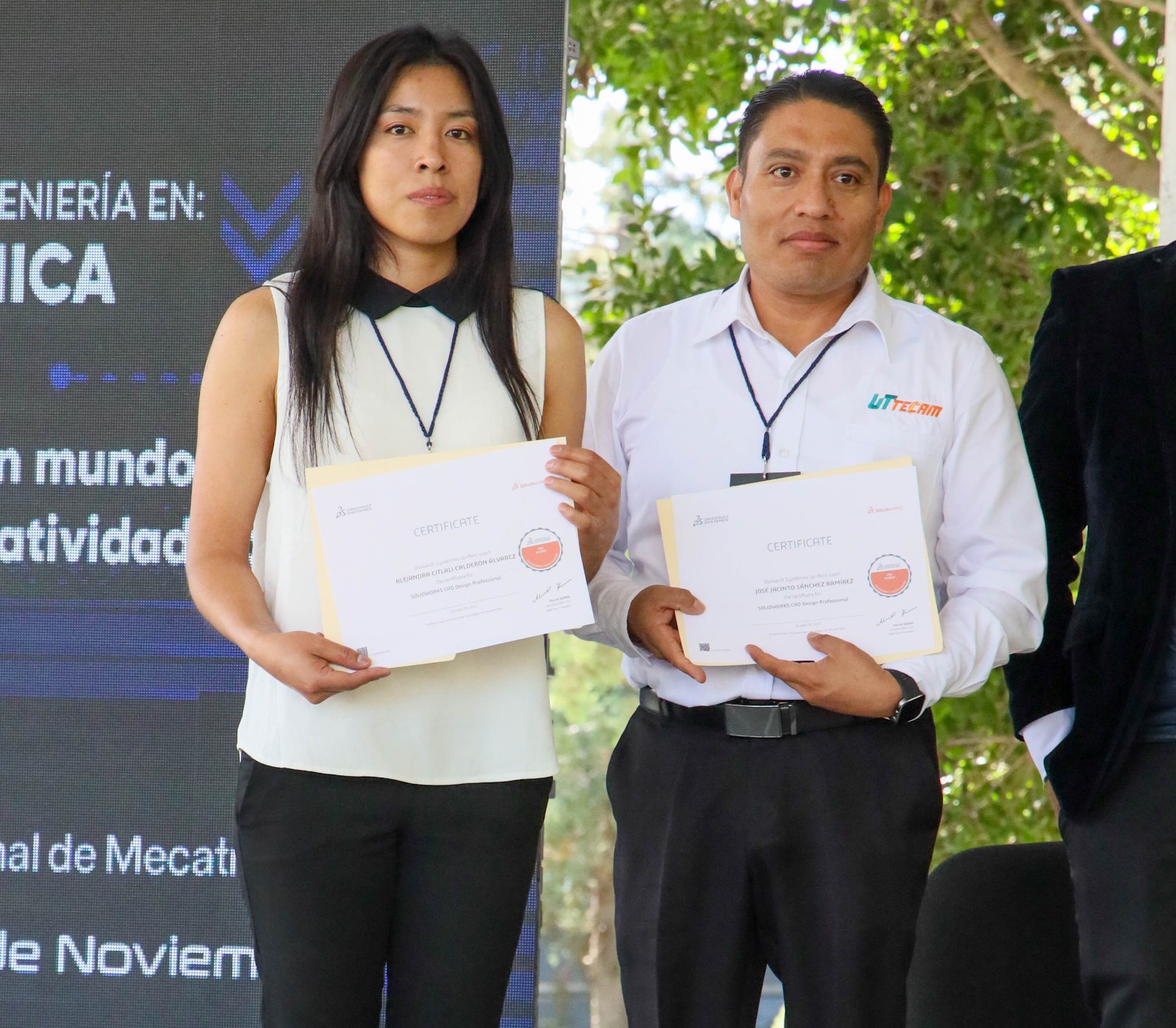 Durante la ceremonia, la empresa Intelligent otorgó una placa de reconocimiento a la UTTECAM como centro certificador de SOLIDWORKS CSWA y CSWP, distinción entregada por el gerente nacional de Educación de Intelligent, Carlos Chávez Jurado. Dichas certificaciones avalan el dominio en modelado, diseño y análisis de piezas y ensamblajes en ingeniería.