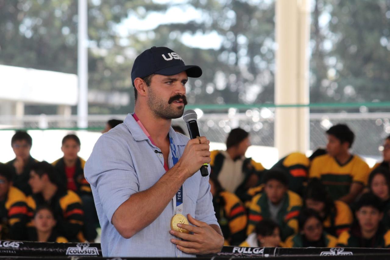 Charles Andrew, medallista de oro en la prueba de 4 × 100 metros en los Juegos Olímpicos de Tokio 2020, mostró su medalla con el propósito de incentivar la constancia en los futuros deportistas y dejó en claro que la confianza en uno mismo debe ser fuerte al contender. “La medalla toma el valor de tu lucha, pero no es por eso que triunfas. Una vez que estás en competencia, sabes que te enfrentas a otros atletas que también están listos, y ese es el verdadero logro, desafiar tus propios límites”, señaló.