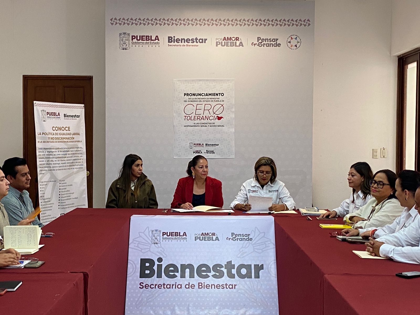 CIUDAD DE PUEBLA, Pue.– En congruencia con la política de respeto, igualdad y justicia impulsada por la presidenta de México, Claudia Sheinbaum y el gobernador Alejandro Armenta, la secretaria de Bienestar, Laura Artemisa García Chávez, firmó el Pronunciamiento de Cero Tolerancia a las Conductas de Hostigamiento Sexual, Acoso Sexual, Violencia o cualquier acto que atente contra la dignidad e integridad de las personas. Este manifiesto también fue signado por las y los integrantes del Comité de Ética y Prevención de Conflictos de Interés.