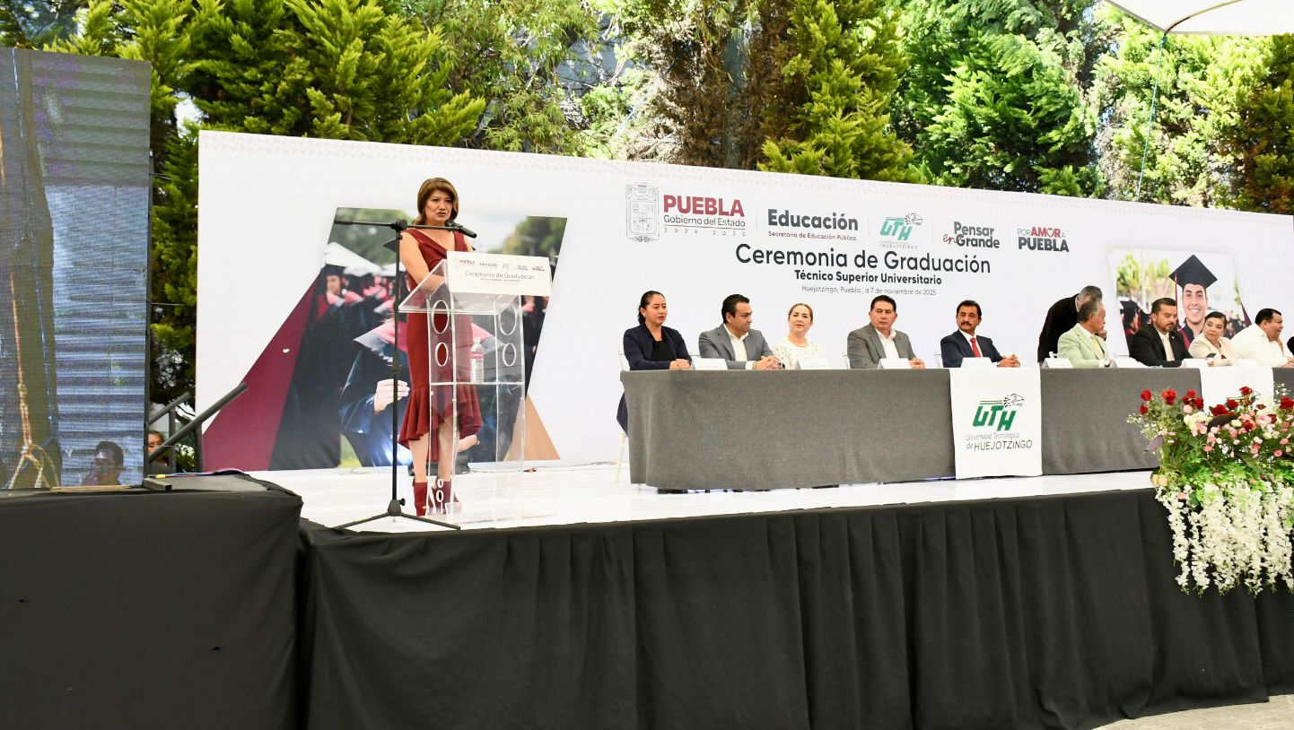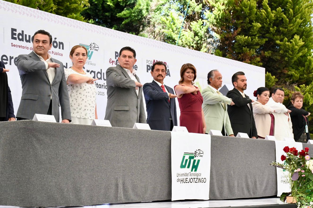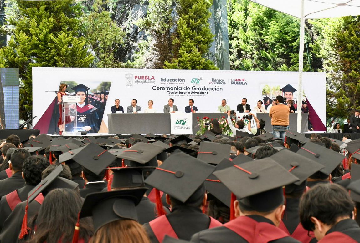 HUEJOTZINGO, Pue.- Un total de 586 jóvenes obtuvieron su título de Técnico Superior Universitario (TSU) de la Universidad Tecnológica de Huejotzingo (UTH). La ceremonia fue presidida por el subsecretario de Educación Superior, Gonzalo Amador Juárez Uribe, y por la rectora Mirna Toxqui Oliver, quienes reconocieron el logro de las y los estudiantes al concluir una etapa en su formación académica.