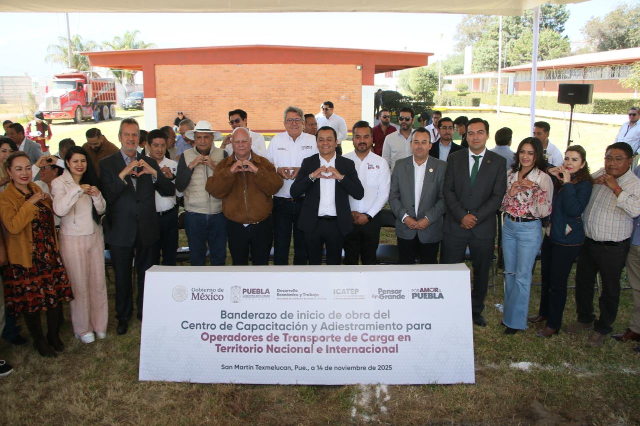 SAN MARTÍN TEXMELUCAN, Pue.- El gobierno estatal que encabeza Alejandro Armenta, a través del Instituto de Capacitación para el Trabajo del Estado de Puebla (ICATEP), en conjunto con la Cámara Nacional del Autotransporte de Carga (CANACAR), llevó a cabo el banderazo de inicio de obra del Centro de Capacitación y Adiestramiento para Operadores de Transporte de Carga en Territorio Nacional e Internacional, en las instalaciones del ICATEP Unidad San Martín.