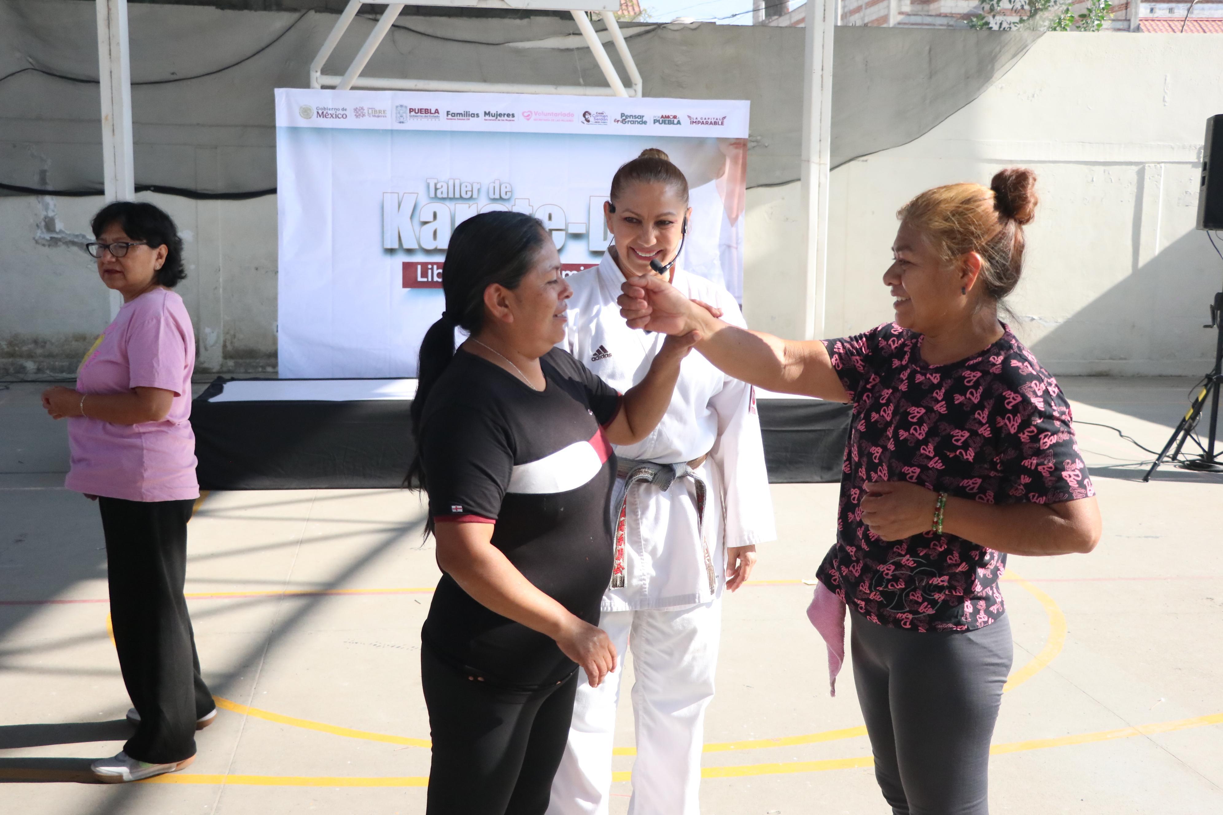 CIUDAD DE PUEBLA, Pue.- Con el firme objetivo de fortalecer la seguridad, autonomía y bienestar de las poblanas, el Gobierno del Estado de Puebla, a través de la Secretaría de las Mujeres, llevó a cabo el taller de Karate-Do “Libres en Movimiento” en el Centro LIBRE–Casa Carmen Serdán de San Aparicio.
