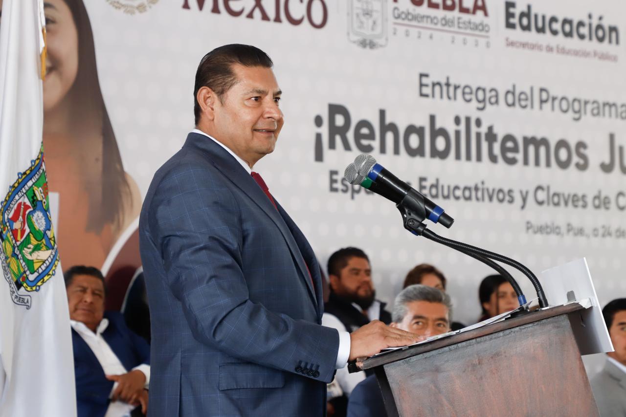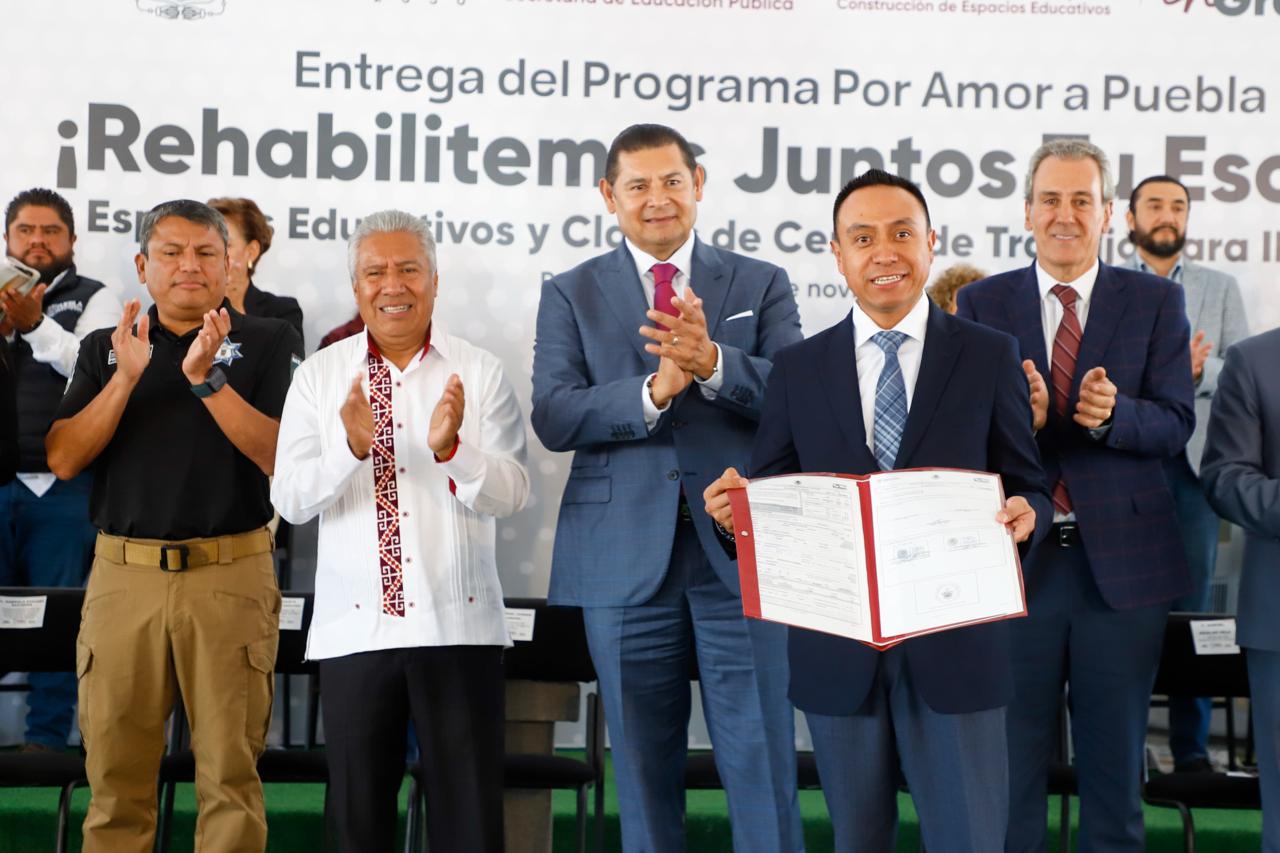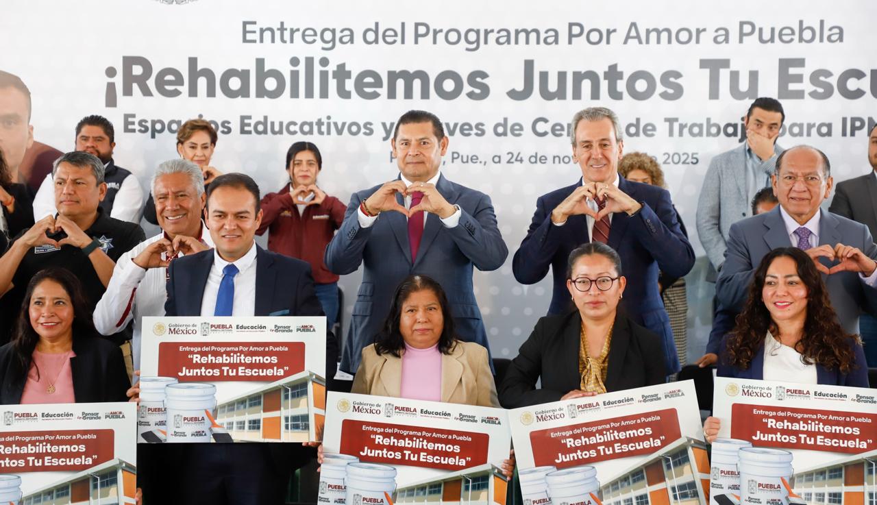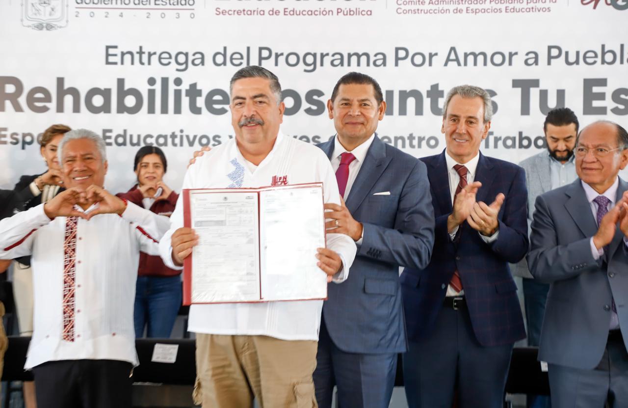 CIUDAD DE PUEBLA, Pue.- El gobernador Alejandro Armenta encabezó en el Centro Escolar Gustavo Díaz Ordaz la entrega de apoyos del programa “Por Amor a Puebla: ¡Rehabilitemos Juntos tu Escuela!”, una estrategia que impulsa mejoras directas en la infraestructura educativa, en colaboración con comunidades escolares, que incluyen al Instituto Politécnico Nacional (IPN) y la Benemérita Universidad Autónoma de Puebla (BUAP).