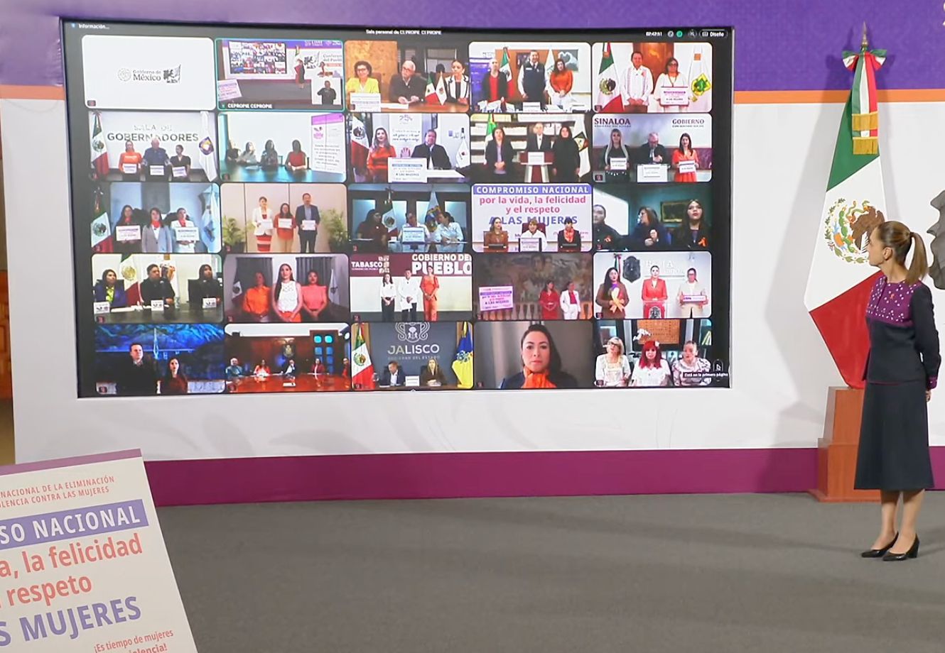 La presidenta Claudia Sheinbaum presentó los diez compromisos firmados por todas y todos los gobernadores. Incluyen la difusión permanente de campañas de igualdad, el acompañamiento a la homologación del tipo penal de abuso sexual, la garantía de que ninguna denuncia sea desestimada, la creación de mesas de coordinación para transporte seguro, la ampliación de senderos seguros, la promoción de actividades escolares cada día 25, la certificación de servidores públicos, la articulación con fiscalías y el poder judicial para actualizar protocolos y el apoyo integral a familias víctimas de feminicidio.