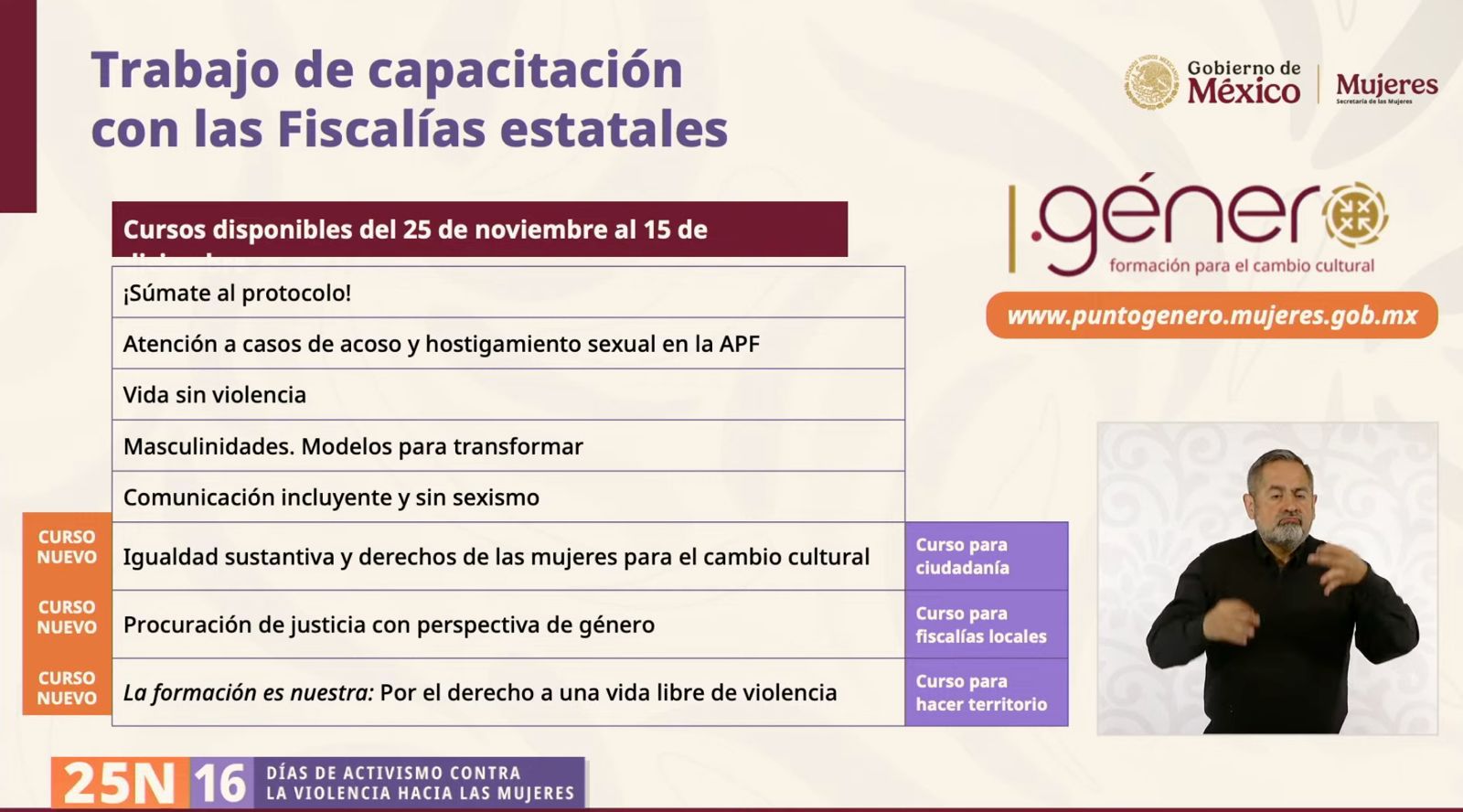 El gobierno federal anunció un amplio calendario de acciones territoriales para los 16 días de activismo, con actividades en municipios, colonias, centros libres y escuelas. Estas incluyen entregas masivas de la Cartilla de Derechos de las Mujeres, convenios con plataformas digitales para movilidad segura, cine-debates, caminatas para detectar riesgos urbanos, murales comunitarios, capacitaciones y encuentros nacionales. Con la firma del compromiso, las y los gobernadores consolidan una agenda conjunta para garantizar espacios seguros, justicia efectiva y una vida libre de violencia para todas las mujeres del país.