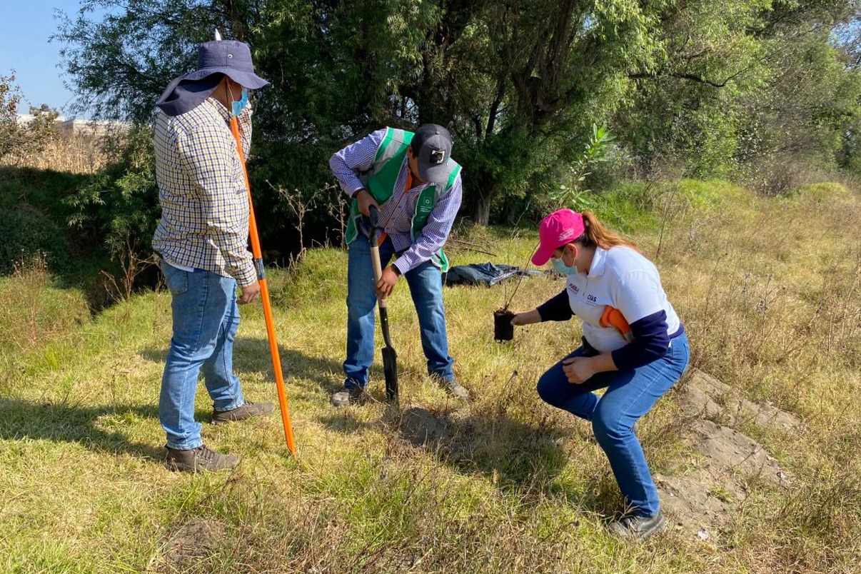 Del mismo modo, como parte de las actividades del día, y en coordinación con la Comisión Nacional Forestal (CONAFOR), fue llevada a cabo una reforestación en la ribera del afluente del río, que tiene por objetivo mejorar el entorno natural y asegurar la recarga natural del acuífero.