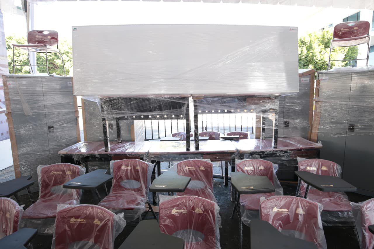 - Se entregaron paquetes de mobiliario educativo a 21 escuelas primarias y secundarias, de 150 que serán apoyadas en la zona conurbada.