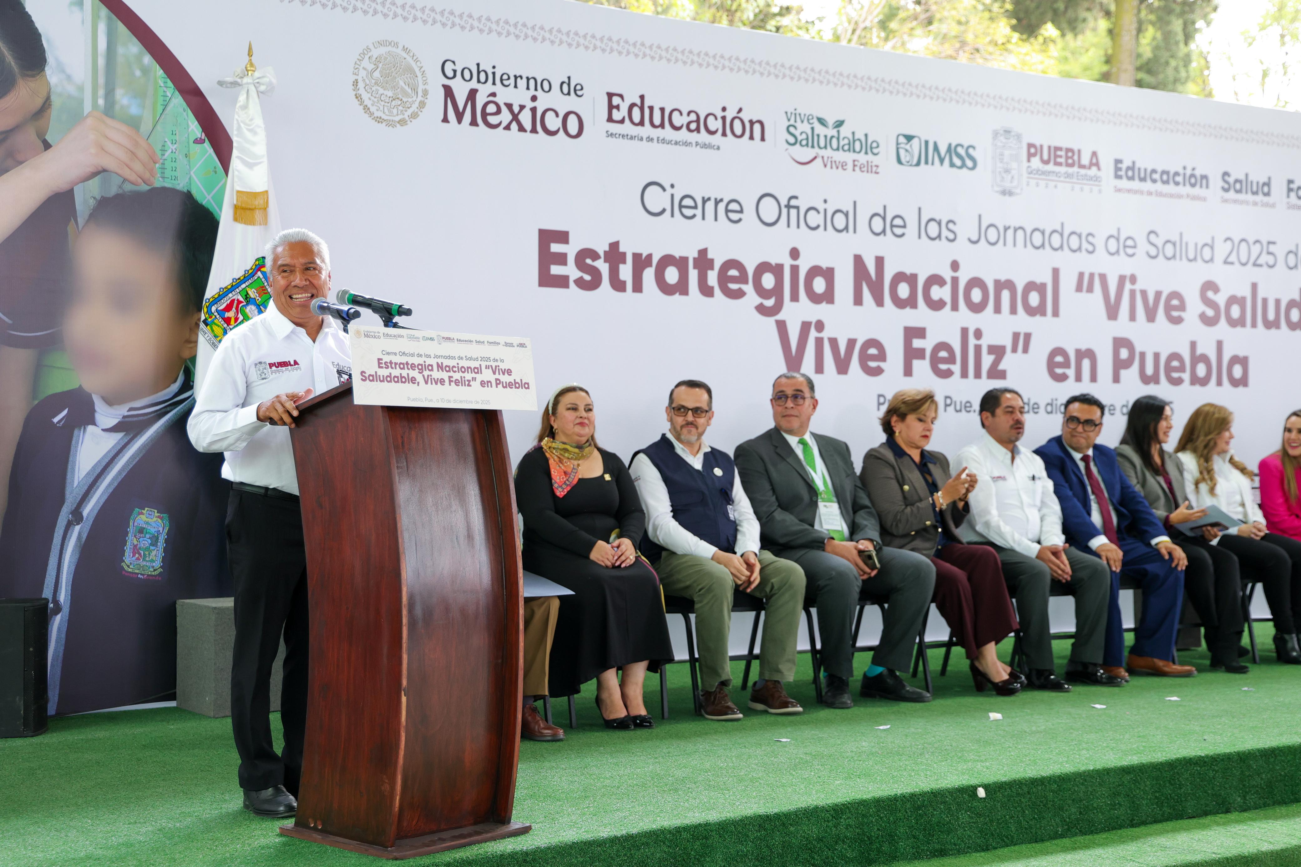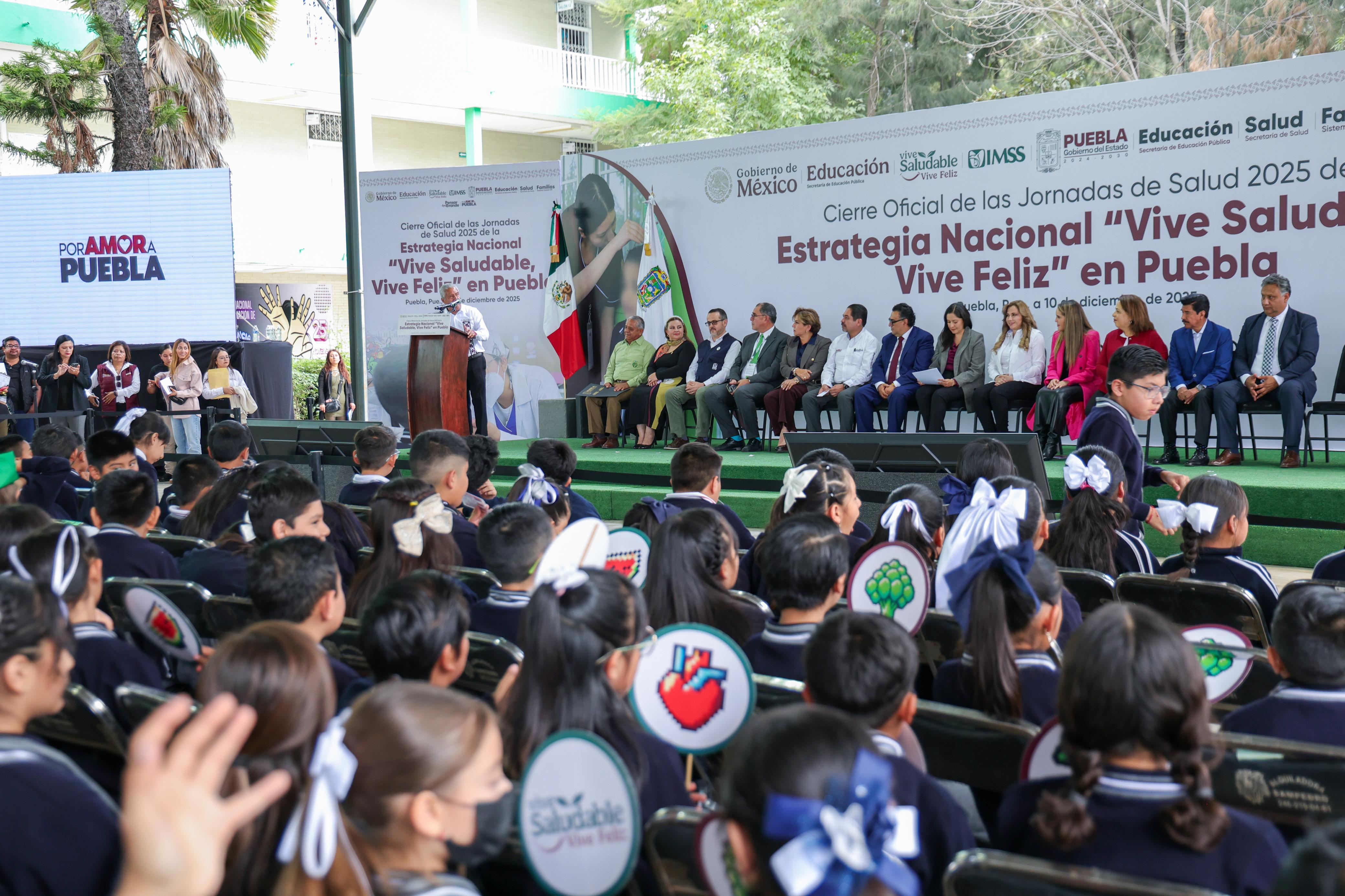 CIUDAD DE PUEBLA, Pue.- Concluyen las jornadas de salud 2025 de la estrategia nacional “Vive Saludable, Vive Feliz”, iniciada por la presidenta Claudia Sheinbaum el pasado 12 de marzo del presente año; mismas que tuvieron el propósito de contribuir al bienestar y la salud de las niñas y los niños para promover hábitos saludables. En Puebla se atendieron 601 mil 195 estudiantes de 4 mil 151 escuelas públicas de nivel primaria, gracias al trabajo coordinado de las secretarías de Educación Pública, Salud, el Sistema Estatal para el Desarrollo Integral de la Familia (SEDIF) y el Instituto Mexicano del Seguro Social (IMSS).