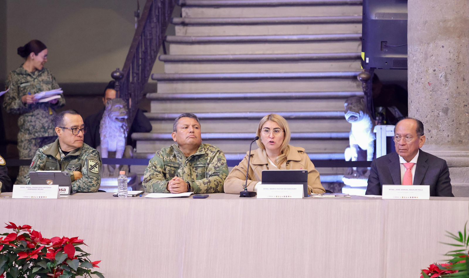 En la mesa de trabajo estuvieron presentes las gobernadoras de Morelos, Margarita González Saravia; del Estado de México, Delfina Gómez Álvarez; de Guerrero, Evelyn Salgado Pineda; así como representantes de los estados Hidalgo, Querétaro y Tlaxcala. También participaron autoridades y altos mandos de la Secretaría de la Defensa Nacional (Defensa), Secretaría de la Marina (Semar), Guardia Nacional (GN), y titulares de las Fiscalías estatales.