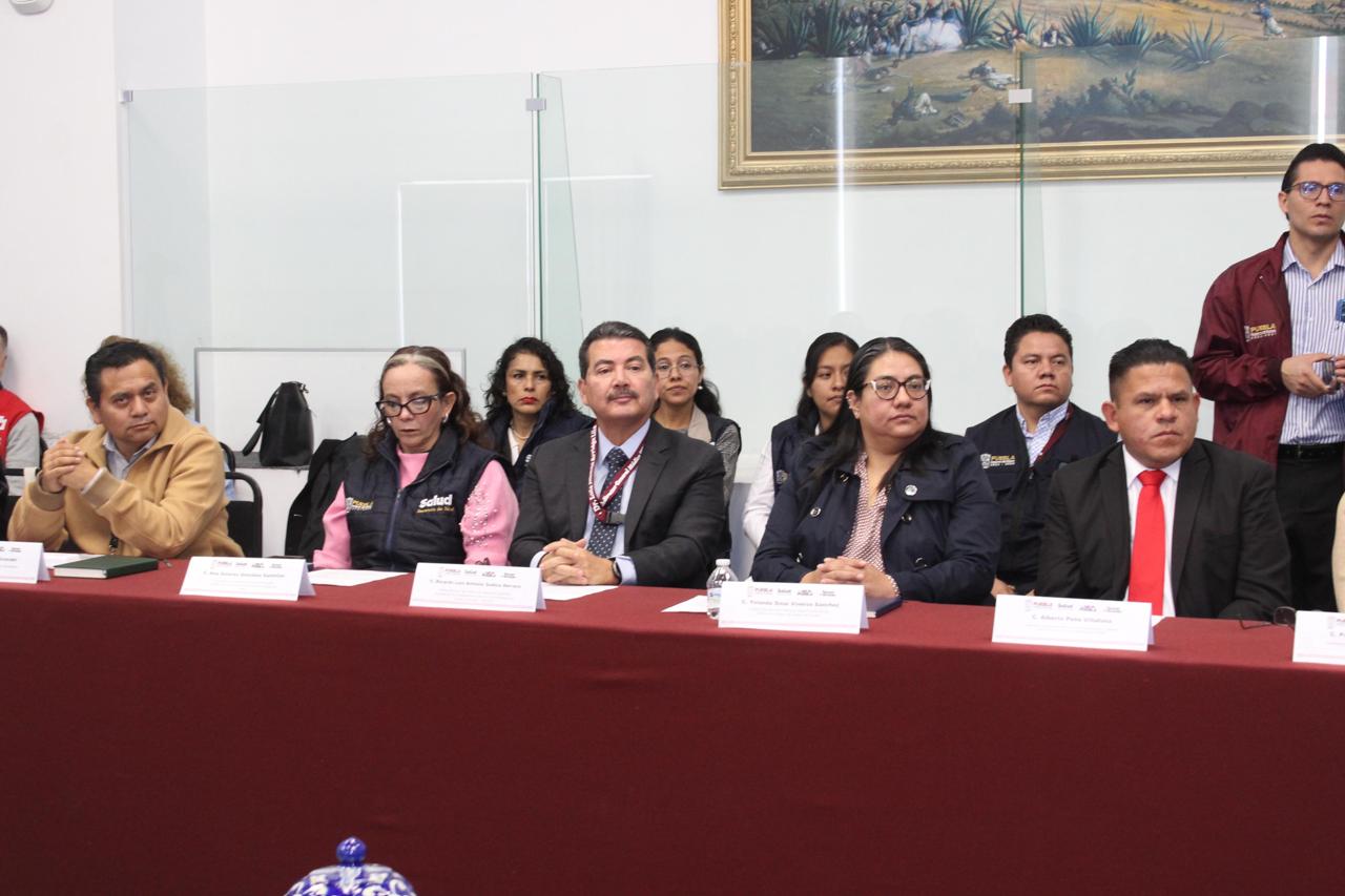 El Comando Operativo para la Seguridad en Salud está integrado por diversas instancias como las secretarías estatales de Gobernación, Educación Pública, y Deporte y Juventud, Protección Civil, así como por la Secretaría de la Defensa Nacional, Petróleos Mexicanos, el IMSS ordinario, IMSS-Bienestar, ISSSTE, ISSSTEP, hospitales privados, las jurisdicciones sanitarias y autoridades aeroportuarias. Además de la Dirección de Salud Pública y Vigilancia Epidemiológica, la Dirección de Protección Contra Riesgos Sanitarios, el Sistema de Urgencias Médicas Avanzadas (SUMA), la Coordinación de Salud Mental y Adicciones, el Servicio Nacional de Salud Pública (SNSP).