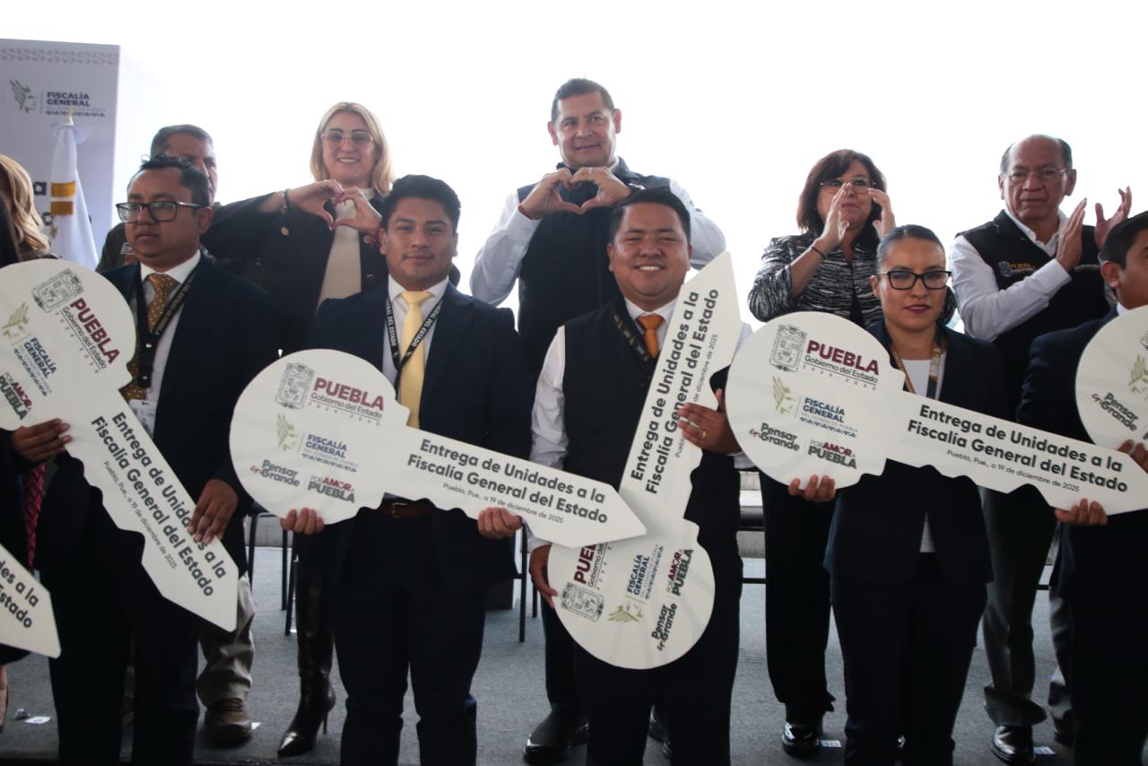 CIUDAD DE PUEBLA, Pue.- En respaldo a mujeres y hombres que sostienen la procuración de justicia y ponen al centro a las y los poblanos, el gobernador Alejandro Armenta encabezó la entrega de 50 unidades a la Fiscalía General. “Una fiscalía fuerte requiere insumos, coordinación y liderazgo directo”, expresó.