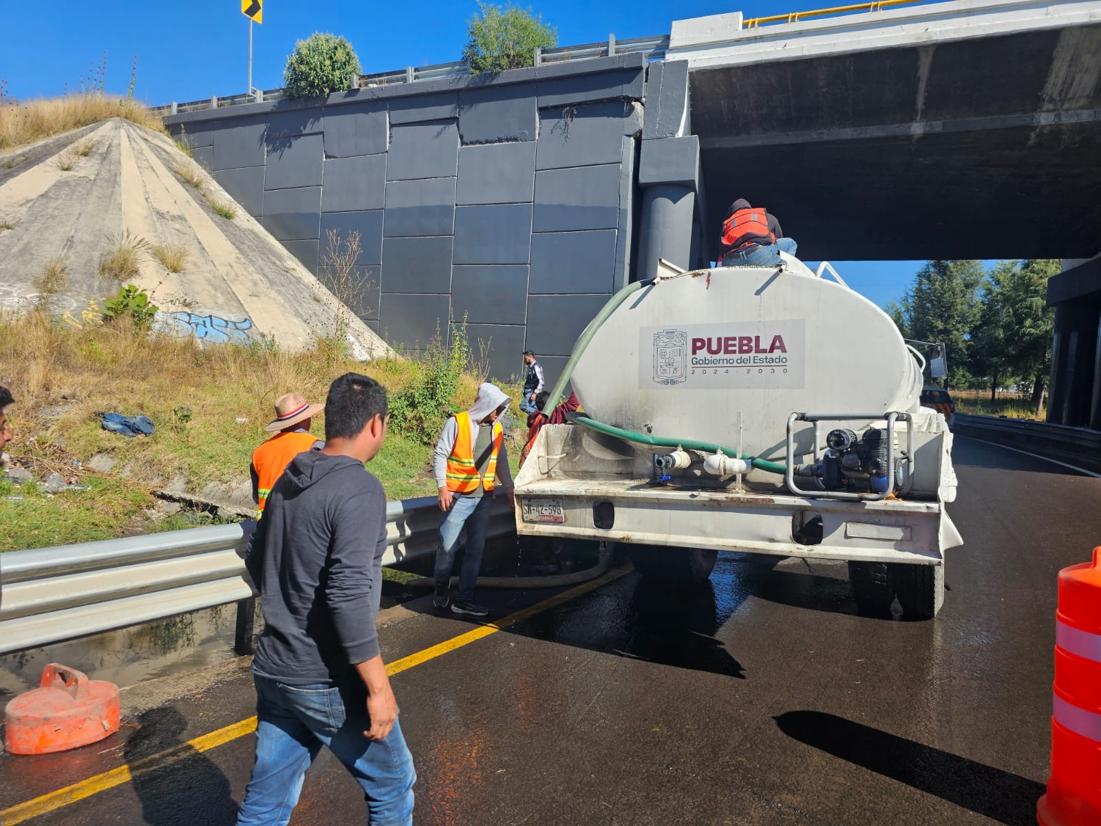 SAN PEDRO CHOLULA, Pue.– El Gobierno del Estado, a través de la Secretaría de Infraestructura, informa que continúan los trabajos de rehabilitación del drenaje pluvial en el retorno del Periférico Ecológico con sentido a Puebla, a la altura del Bulevar Forjadores, zona que resultó afectada por un accidente vehicular.