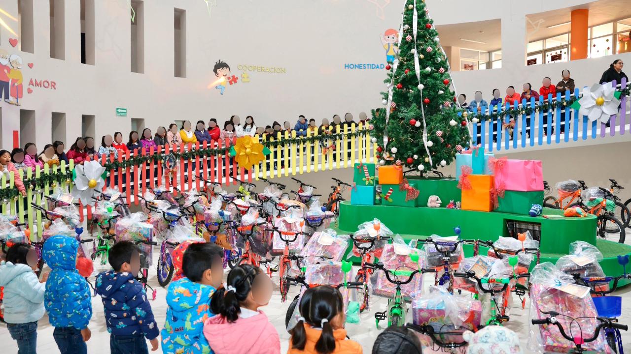 Al despertar, experimentaron la sorpresa de encontrar sus regalos bajo el árbol de Navidad. Cada uno de ellos fue beneficiado con una bicicleta, una chamarra y un juguete, gracias a la sensibilidad de la presidenta del Patronato del Sistema Estatal para el Desarrollo Integral de la Familia (SEDIF), Ceci Arellano, cuya complicidad con los Reyes hizo posible que esta tradición se transformara en un momento de alegría y esperanza para todas y todos.