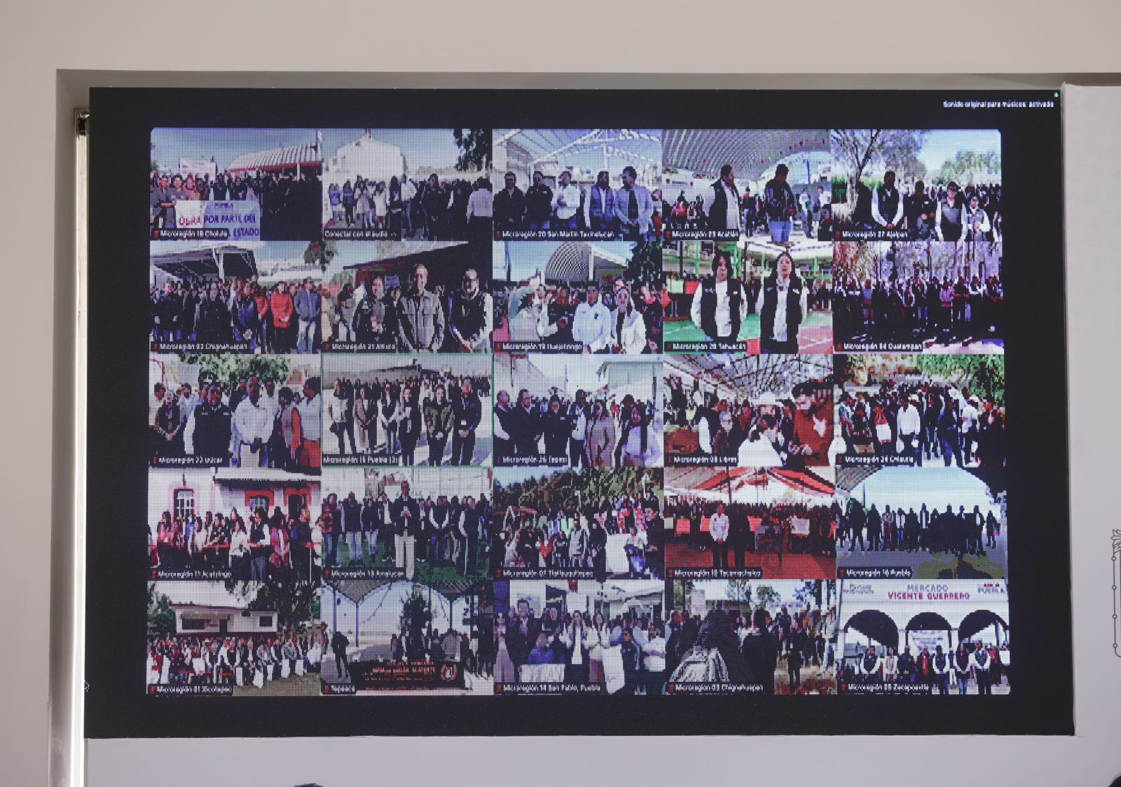 Por último, el secretario de Gobernación, Samuel Aguilar Pala, encabezó la transmisión simultánea con las 27 microrregiones del estado, donde delegadas y delegados de Bienestar informaron sobre la entrega de obras comunitarias en regiones como Xicotepec, Huauchinango, Sierra Norte, Teziutlán, Libres, Ciudad Serdán, Tecamachalco y Puebla capital, entre otras.