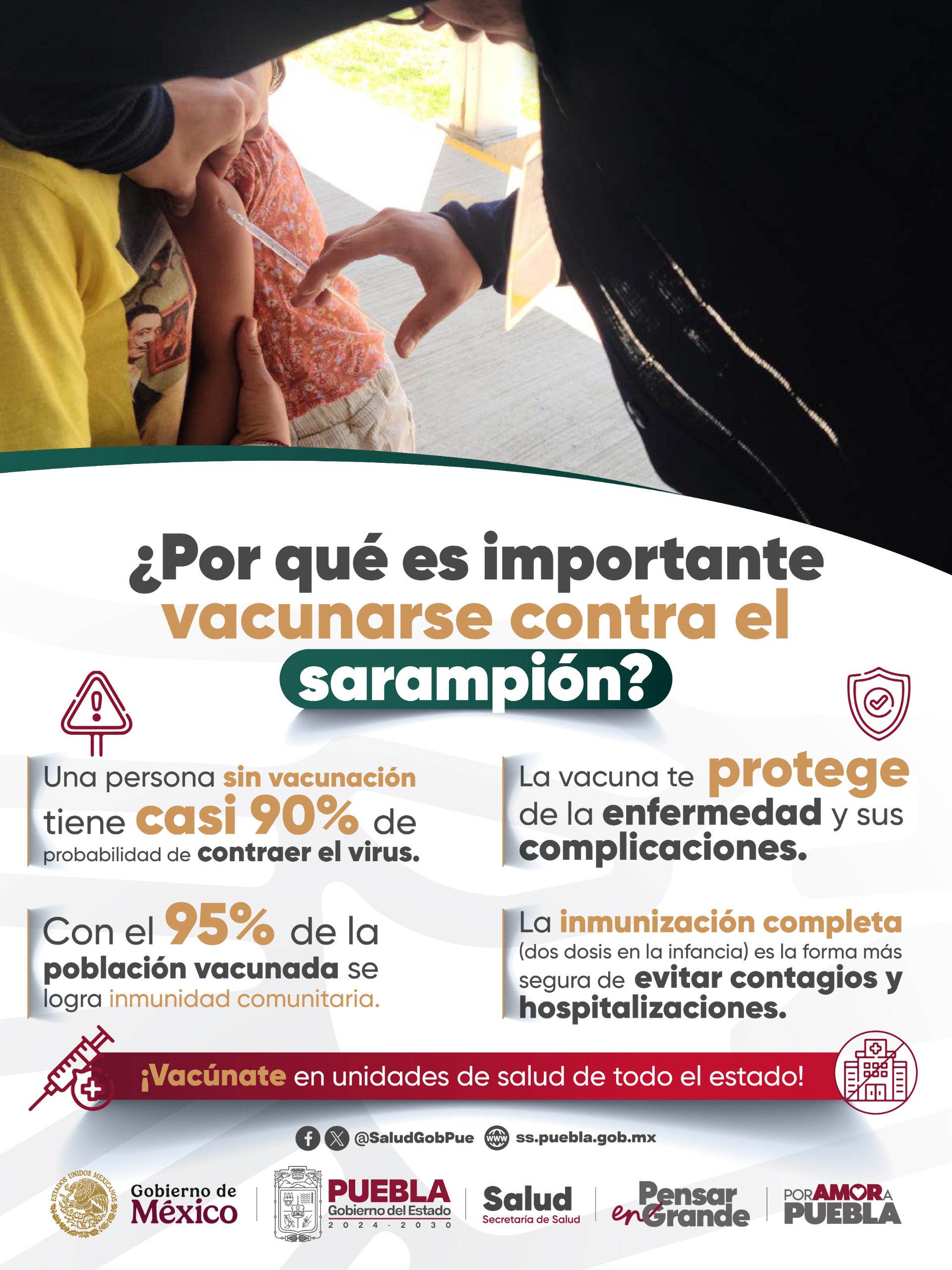 CIUDAD DE PUEBLA, Pue.- A fin de salvaguardar el bienestar de la población, el Gobierno del Estado, por conducto de la Secretaría de Salud, hizo un llamado a reforzar las medidas de prevención contra el sarampión, principalmente mediante la vacunación.