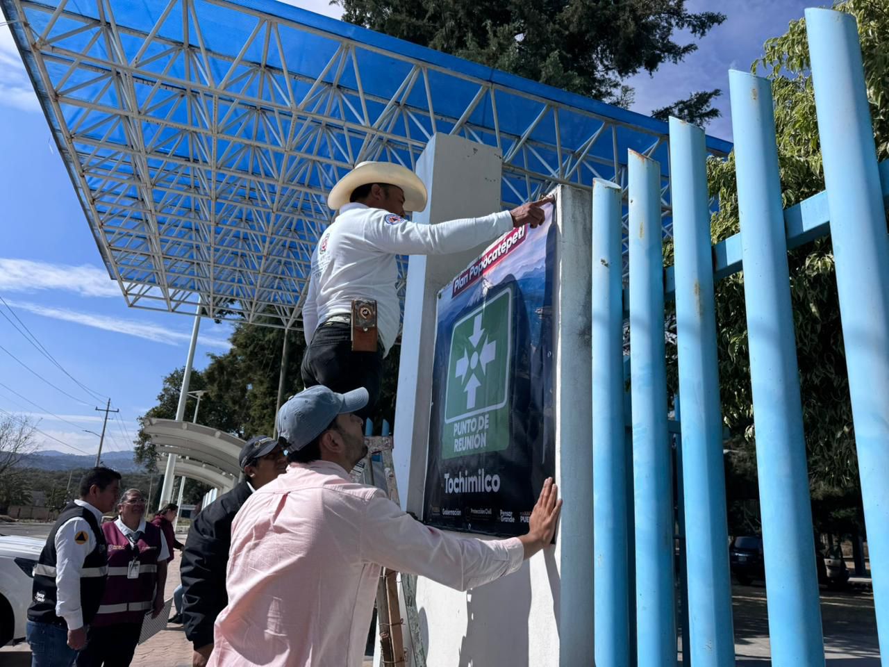Como parte del plan operativo en la zona, se instaló señalética esencial para fortalecer la seguridad de la población. Se colocaron anuncios de puntos de reunión y rutas de evacuación en 13 localidades de los municipios de Atlixco, Calpan, San Nicolás de los Ranchos, Tianguismanalco, Tochimilco y Atzitzihuacan; también se abarcaron las rutas de evacuación 2, 6, 7, 8, 9 y 10.