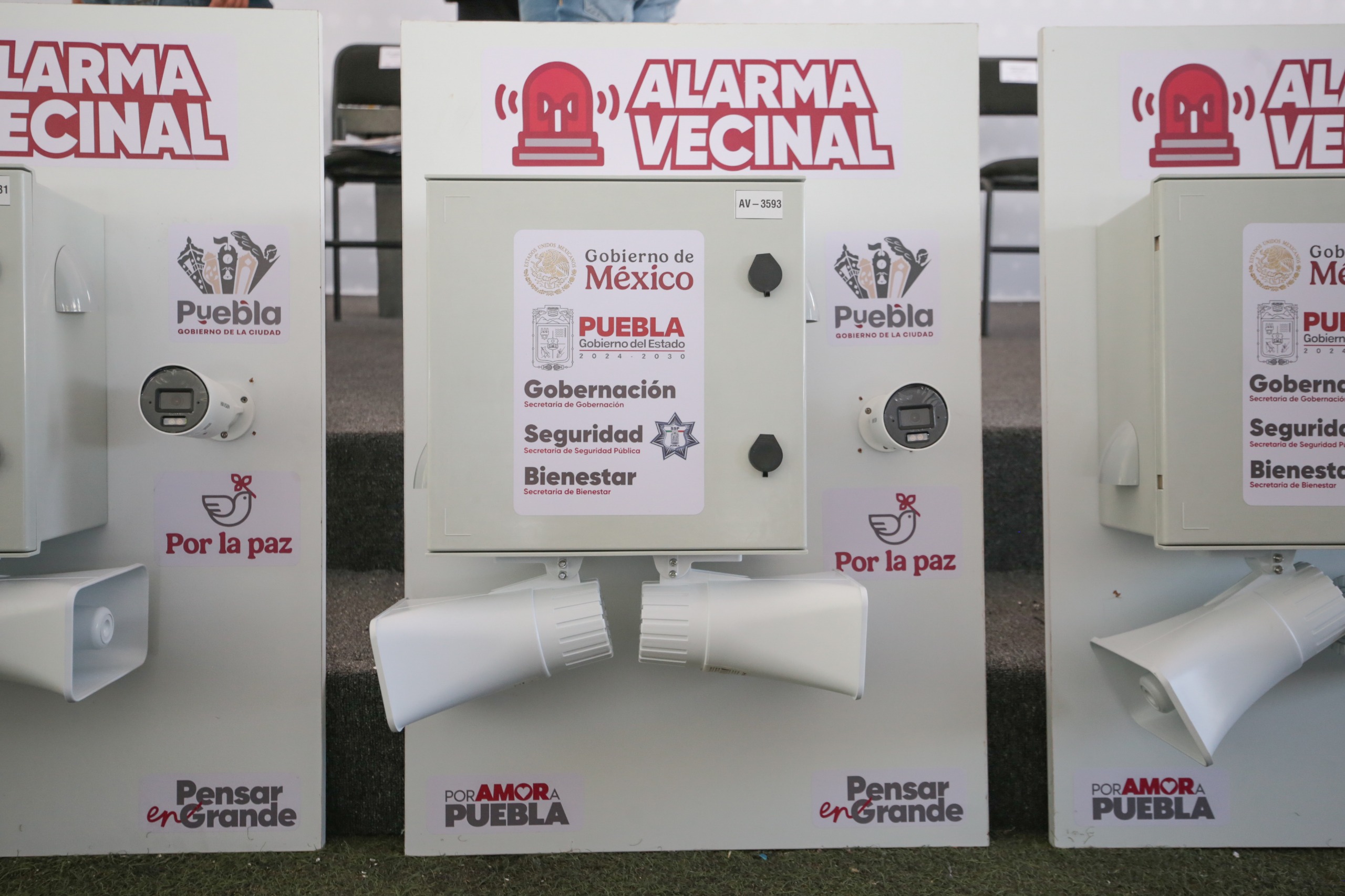 CIUDAD DE PUEBLA, Pue.- El Gobierno de Puebla instalará 2 mil alarmas vecinales durante el presente año, con el propósito de fortalecer la seguridad y la organización comunitaria. El gobernador Alejandro Armenta destacó que este modelo funciona a través de comités vecinales y prioriza en todo momento la protección de la ciudadanía, sin exponerla a riesgos. Explicó que las alarmas cuentan con videocámaras conectadas al Centro de Comando, Control, Comunicaciones, Cómputo, Coordinación e Inteligencia (C5i), lo que permite que, al activarse, el llamado sea atendido de manera inmediata por la patrulla más cercana.