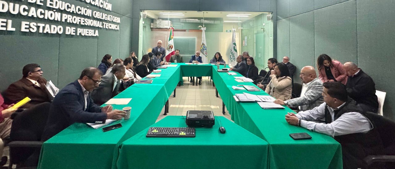 CIUDAD DE PUEBLA, Pue.- Con el objetivo de reforzar estrategias académicas y administrativas para optimizar el aprovechamiento escolar, el director general del Colegio de Educación Profesional Técnica del Estado de Puebla (Conalep), Gonzalo Amador Juárez Uribe sostuvo una mesa de trabajo con directoras y directores de los doce planteles en la entidad.