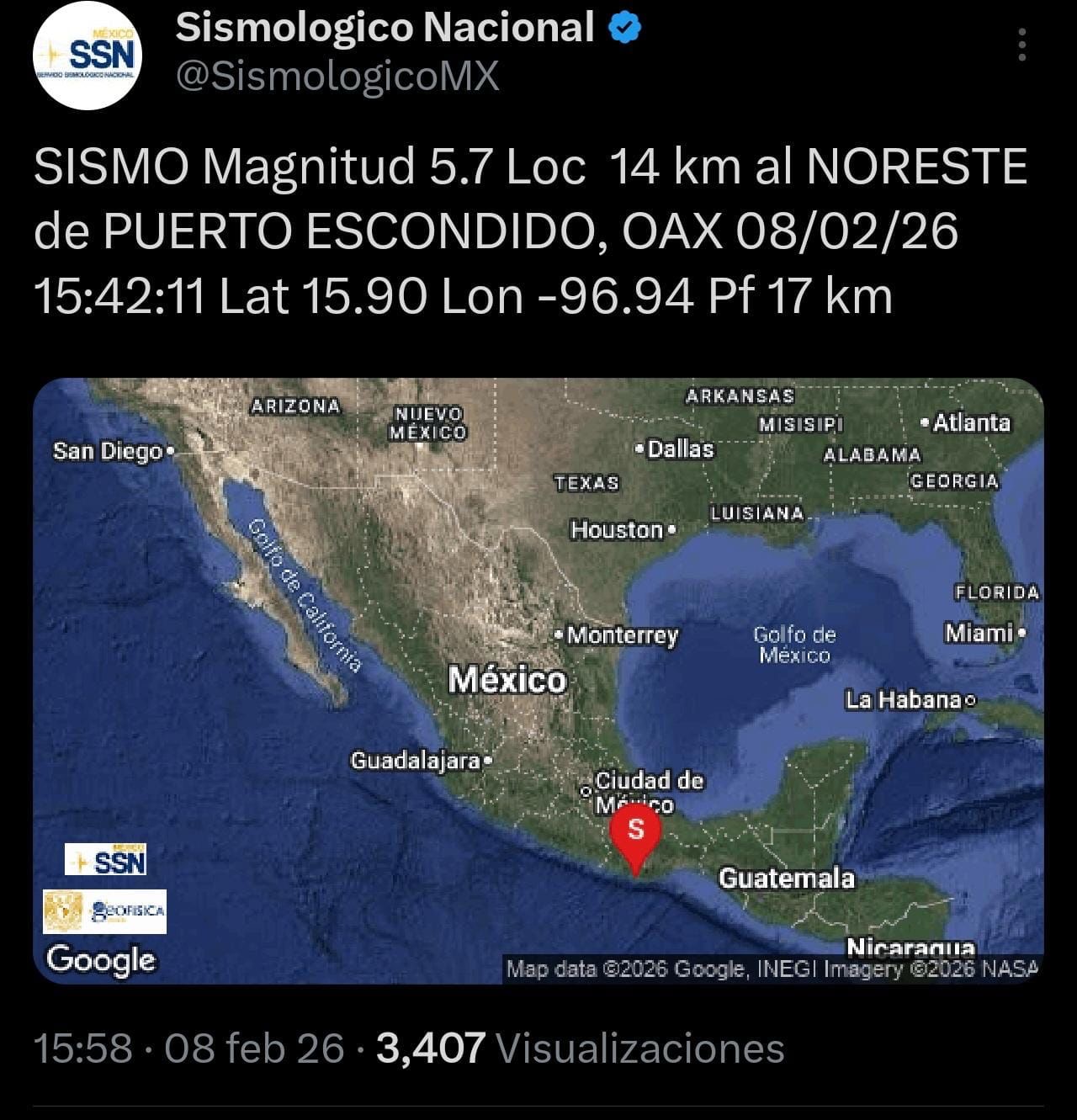 -La magnitud preliminar fue de 5.7, con epicentro en Puerto Escondido, Oaxaca.