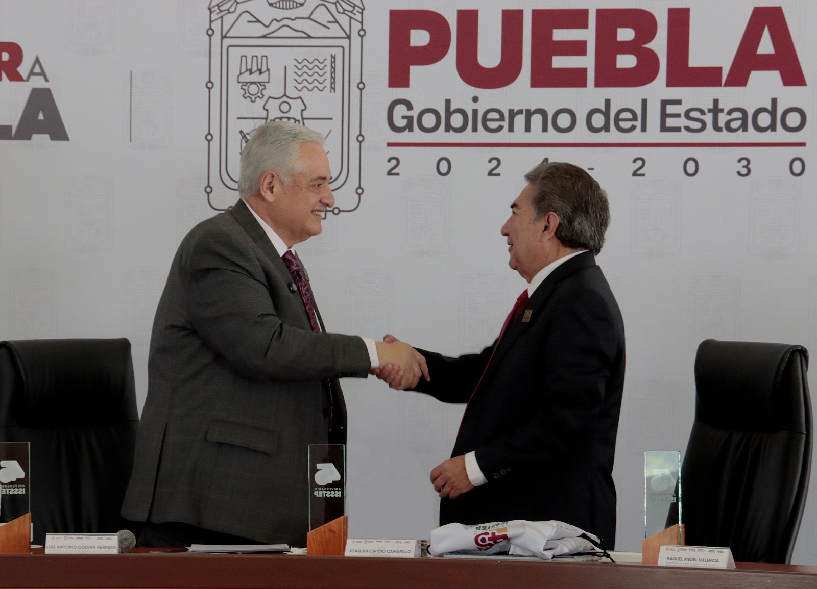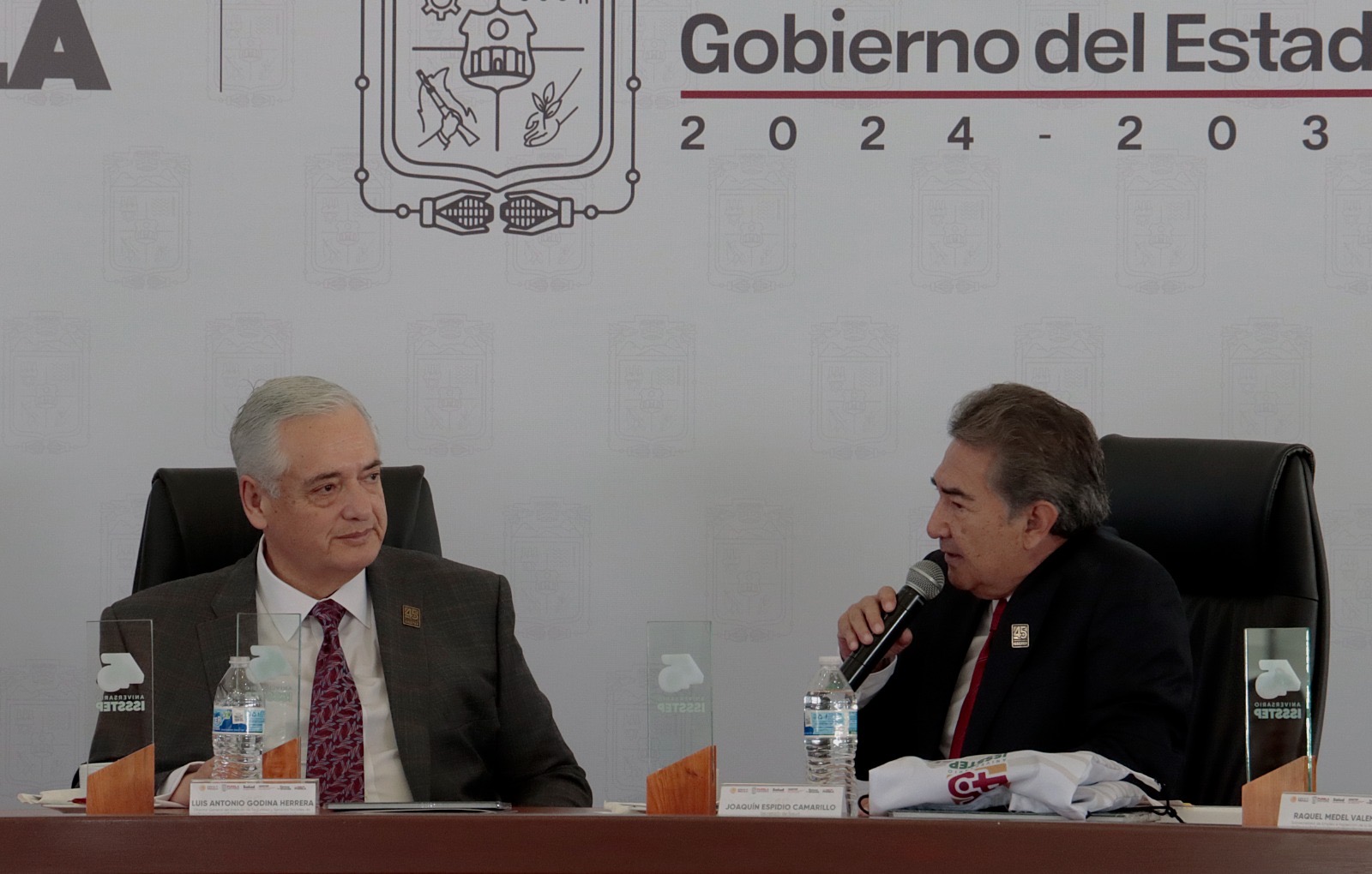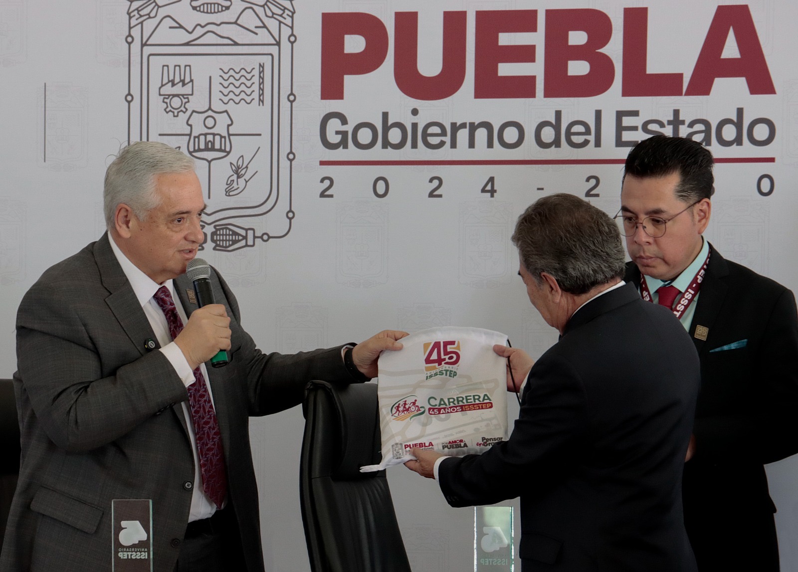 CIUDAD DE PUEBLA, Pue. - En la sesión solemne por el cuadragésimo quinto aniversario del ISSSTEP, el secretario de Salud del Estado, Joaquín Espidio Camarillo asistió en representación del gobernador Alejandro Armenta Mier y ratificó que la salud y la seguridad social constituyen ejes estratégicos para Puebla. El Instituto atiende a 160 mil 218 personas derechohabientes, lo que lo coloca como el tercer organismo con mayor proporción de afiliación en el estado y como un pilar del bienestar social.