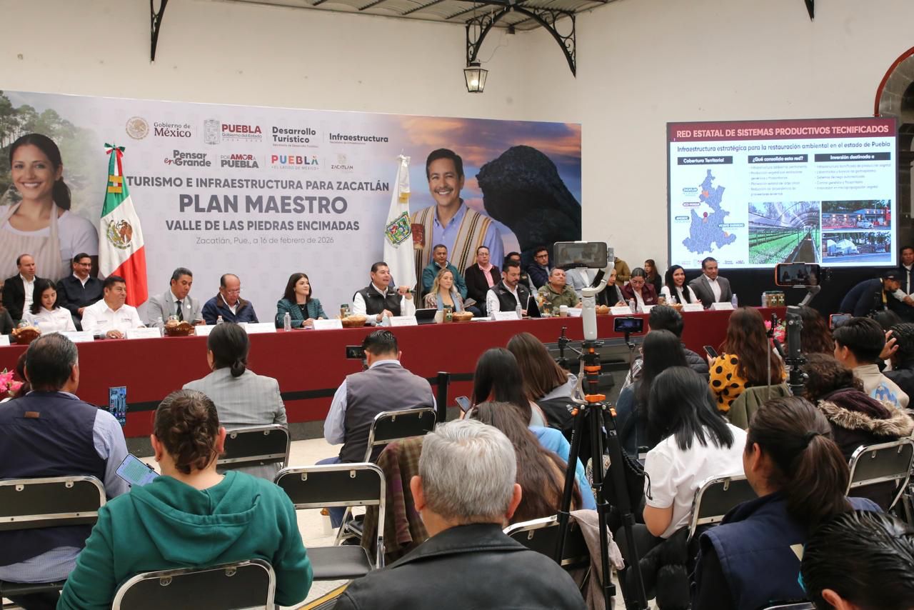ZACATLÁN, Pue.- Con el fin de detonar el turismo en la Sierra Norte, generar derrama económica y riqueza comunitaria, el gobernador de Puebla, Alejandro Armenta Mier, presentó el Plan Maestro del Valle de Piedras Encimadas, que se trabaja de manera conjunta con el Gobierno de México, que encabeza la presidenta Claudia Sheinbaum y con el titular de la Unidad de Proyectos de Infraestructura Urbana y Espacio Público del Gobierno de México, Román Meyer.