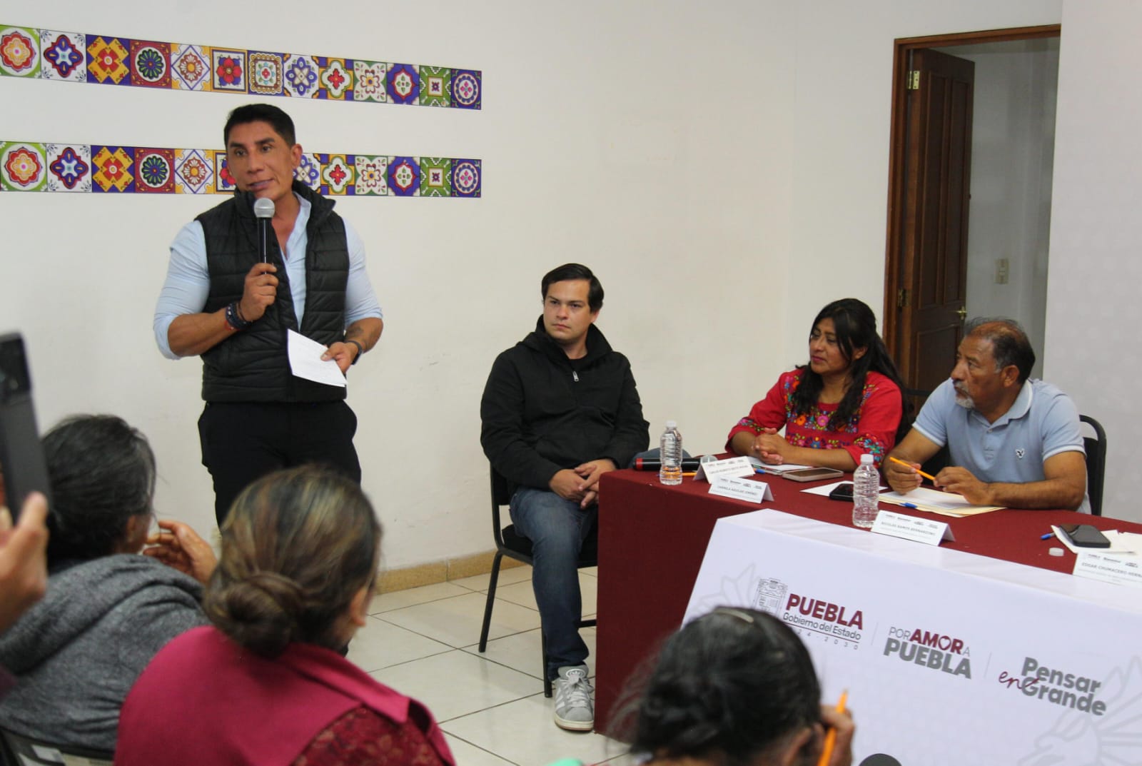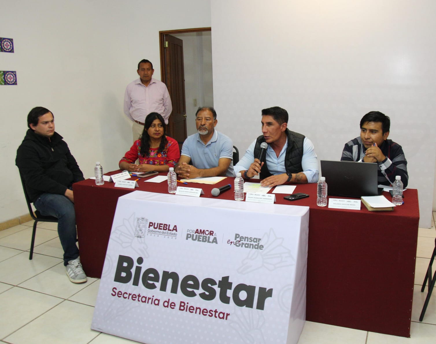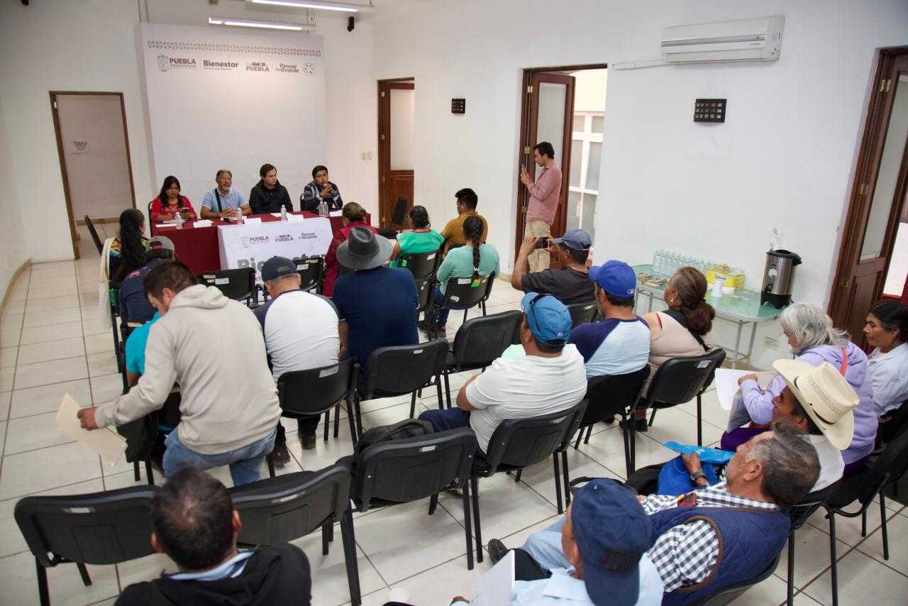 CIUDAD DE PUEBLA, Pue.-27 autoridades tradicionales del pueblo Ngiwa, entablaron una reunión de trabajo en la Secretaría de Bienestar con el propósito de explicar la operación del Programa de Obra Comunitaria y resolver dudas sobre su aplicación en sus municipios: Caltepec, Coyotepec, Tepanco de López, Tepexi de Rodríguez, Tlacotepec de Benito Juárez y Zapotitlán Salinas,