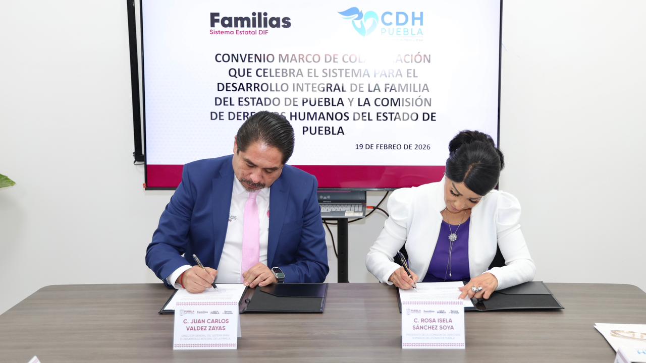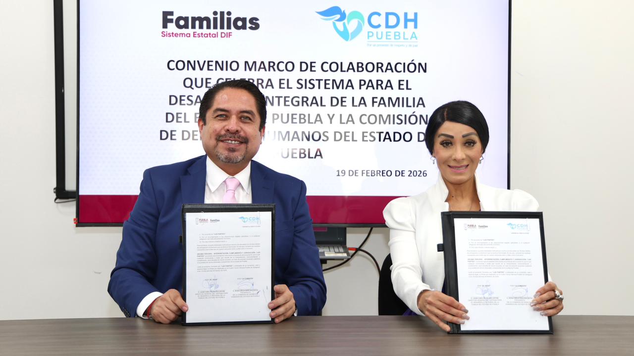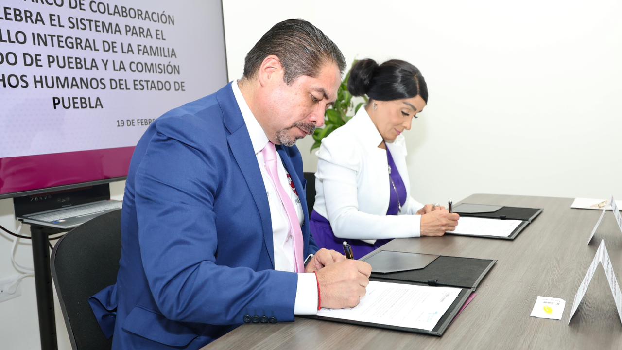 CIUDAD DE PUEBLA, Pue.– Fortalecer la promoción, protección y defensa de los derechos humanos es el propósito del convenio marco de colaboración que firmaron el Sistema Estatal para el Desarrollo Integral de la Familia (SEDIF) y la comisión de Derechos Humanos del Estado de Puebla (CDH). La rúbrica consolida el inicio de una agenda conjunta en favor de la población en situación de vulnerabilidad e implementará mecanismos que brinden una atención cada vez más cercana, sensible y cálida a las y los poblanos, en vías de superar el modelo burocrático tradicional, prioridad de la presidenta del Patronato, Ceci Arellano.
