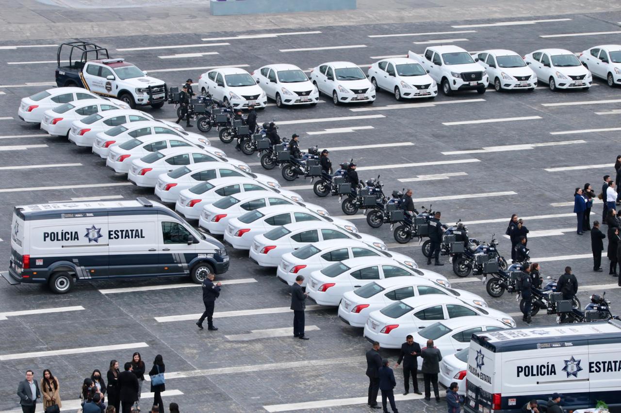 - El gobernador encabezó la entrega de 111 unidades, entre motocicletas, patrullas, ambulancias y helicópteros por un monto de 57 mdp.