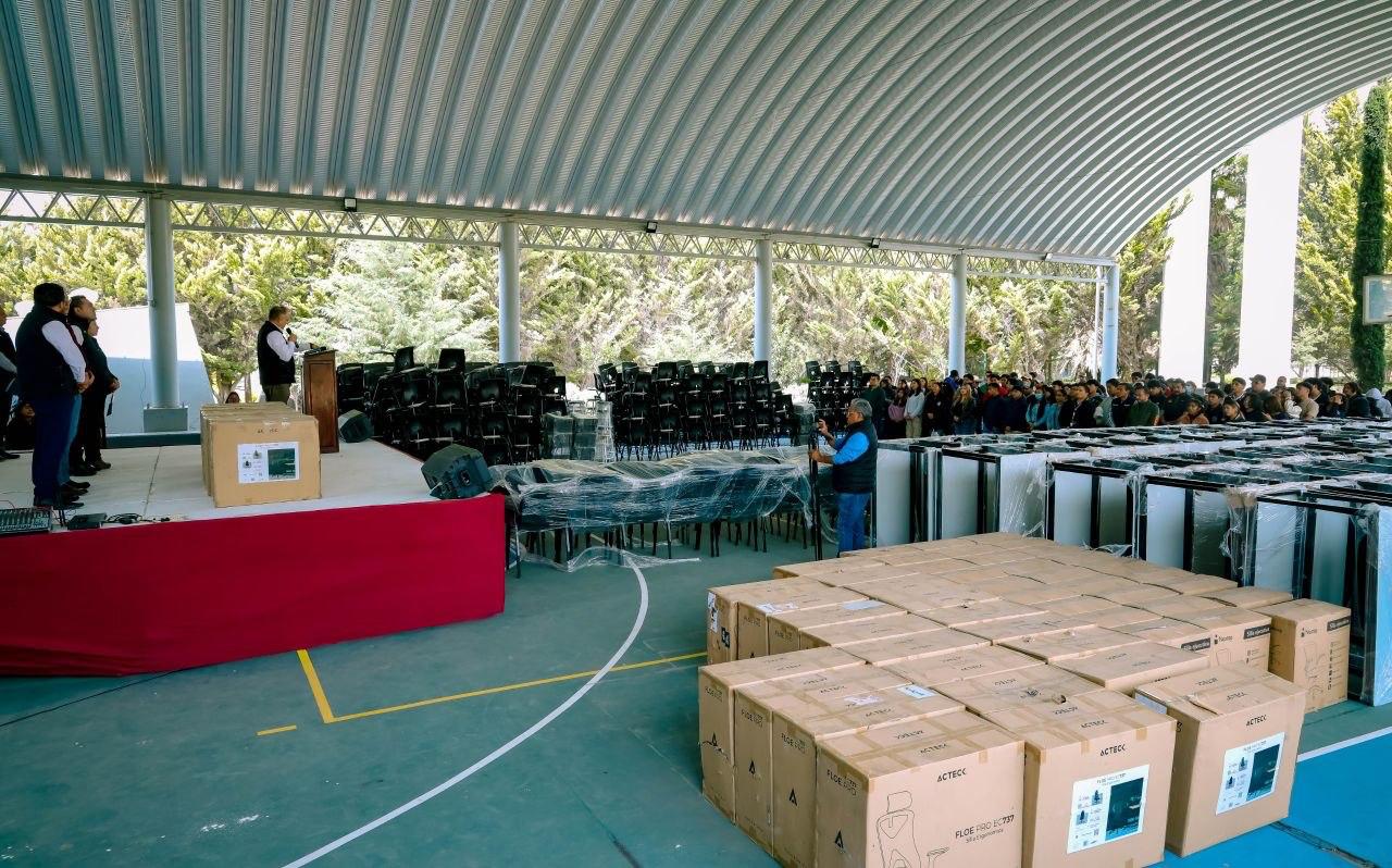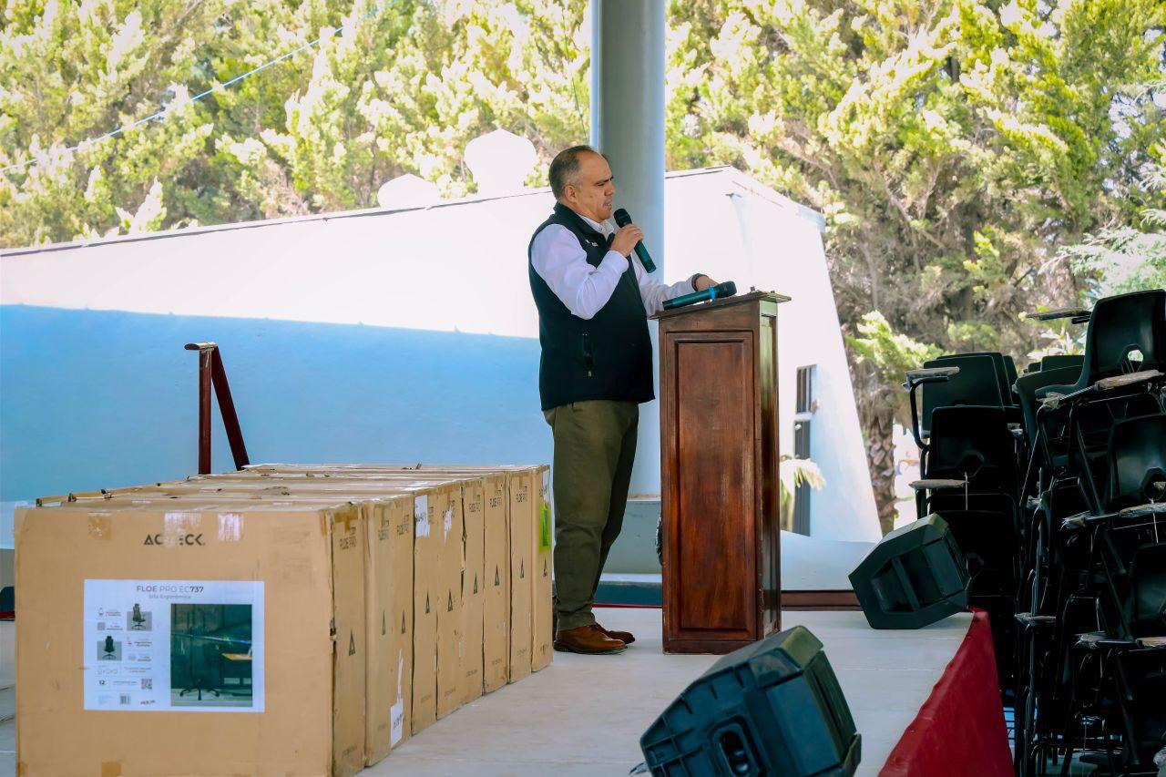 El rector detalló que el equipamiento incluye 160 mesas binarias, 450 sillas de visita, 40 bancos altos, 300 sillas con paleta, una mesa de juntas, 30 sillas ejecutivas y 27 sillas secretariales, distribuidas entre los distintos programas educativos. Estas piezas permiten contar con espacios más adecuados para el aprendizaje.
