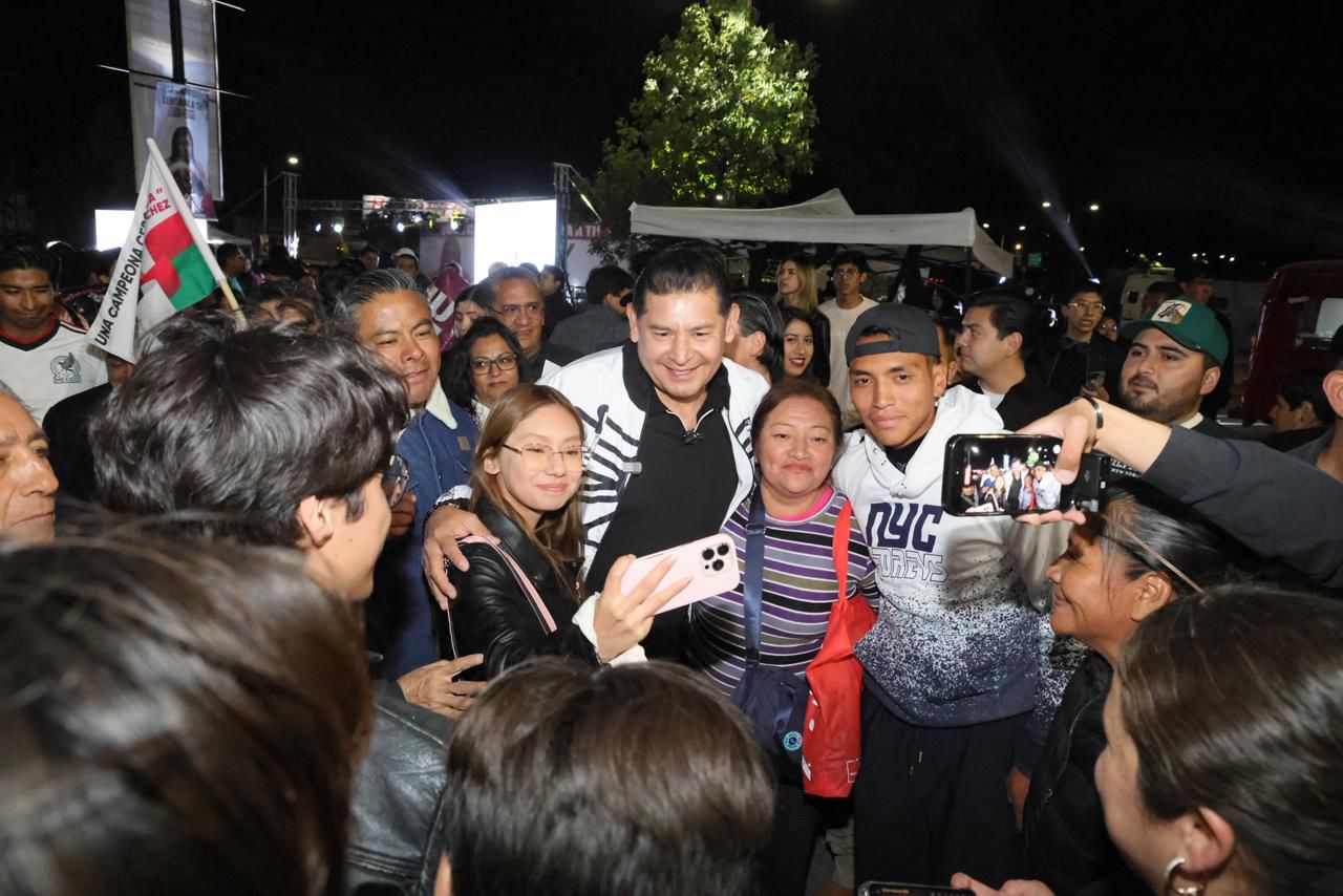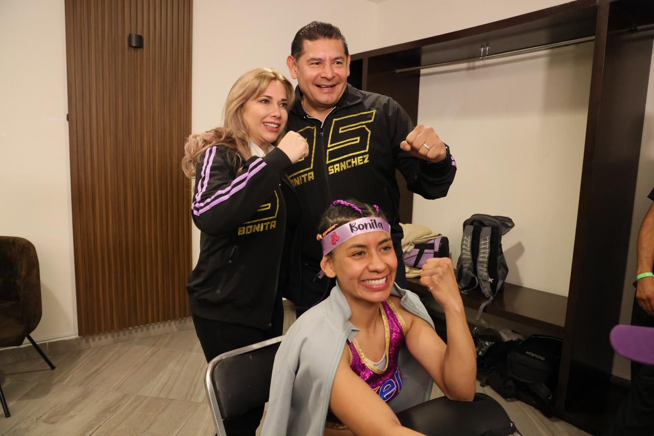 Previamente, el gobernador compartió con la afición congregada en el exterior del Auditorio GNP, donde se vivió un ambiente de auténtica fiesta deportiva. En el lugar las familias poblanas se reunieron para celebrar y refrendar su respaldo total a la pugilista, en lo que fue una muestra de unidad.