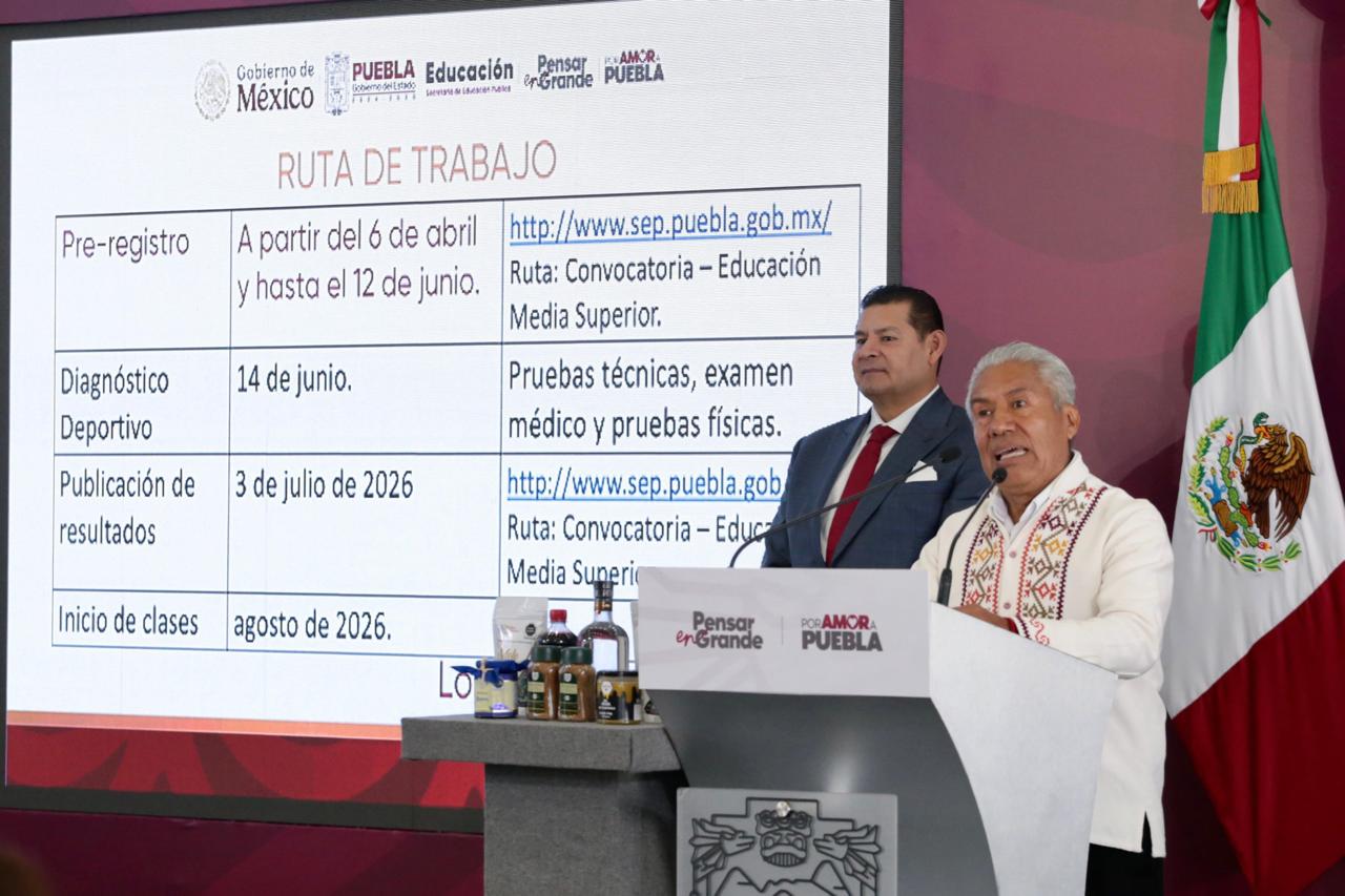 Recordó que, del 6 de abril al 6 de junio, las y los interesados en ingresar al bachillerato podrán consultar la convocatoria en http://www.sep.puebla.gob.mx/, para realizar su preregistro. Informó que el 14 de junio se aplicarán las pruebas técnicas, físicas y el examen médico. Asimismo, señaló que los resultados se publicarán el 3 de julio y que el inicio de clases se llevará a cabo en agosto del presente año.