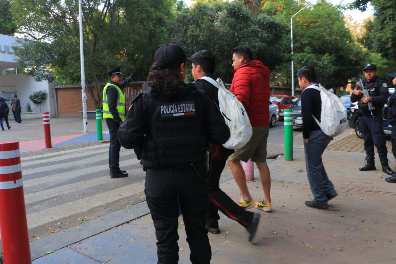Con el despliegue de más de mil 300 elementos de la Policía Estatal, se llevan a cabo acciones de disuasión, vigilancia, proximidad y ordenamiento vial en instituciones de educación básica, media y superior.