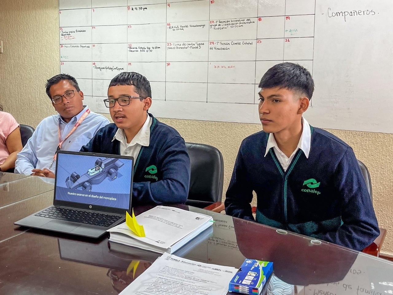 CIUDAD DE PUEBLA, Pue.- Con el propósito de impulsar el emprendedurismo, creatividad e innovación en la comunidad educativa, el director general del Colegio de Educación Profesional Técnica del Estado de Puebla (Conalep), Gonzalo Amador Juárez Uribe se reunió con estudiantes del plantel Atencingo creadores de la “Escudería Pakal”, con la cual participarán los días 21 y 22 de mayo en STEM Racing Puebla 2026 que se efectuará en el Instituto Tecnológico de Puebla (ITP).