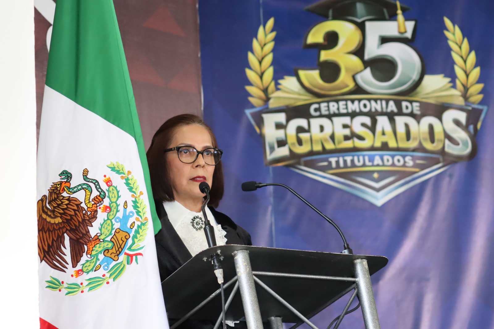 En representación del secretario de Educación Pública, Manuel Viveros Narciso, padrino de generación, la subsecretaria de Educación Superior, Lizbet Martínez Moreno, presidió esta ceremonia académica.