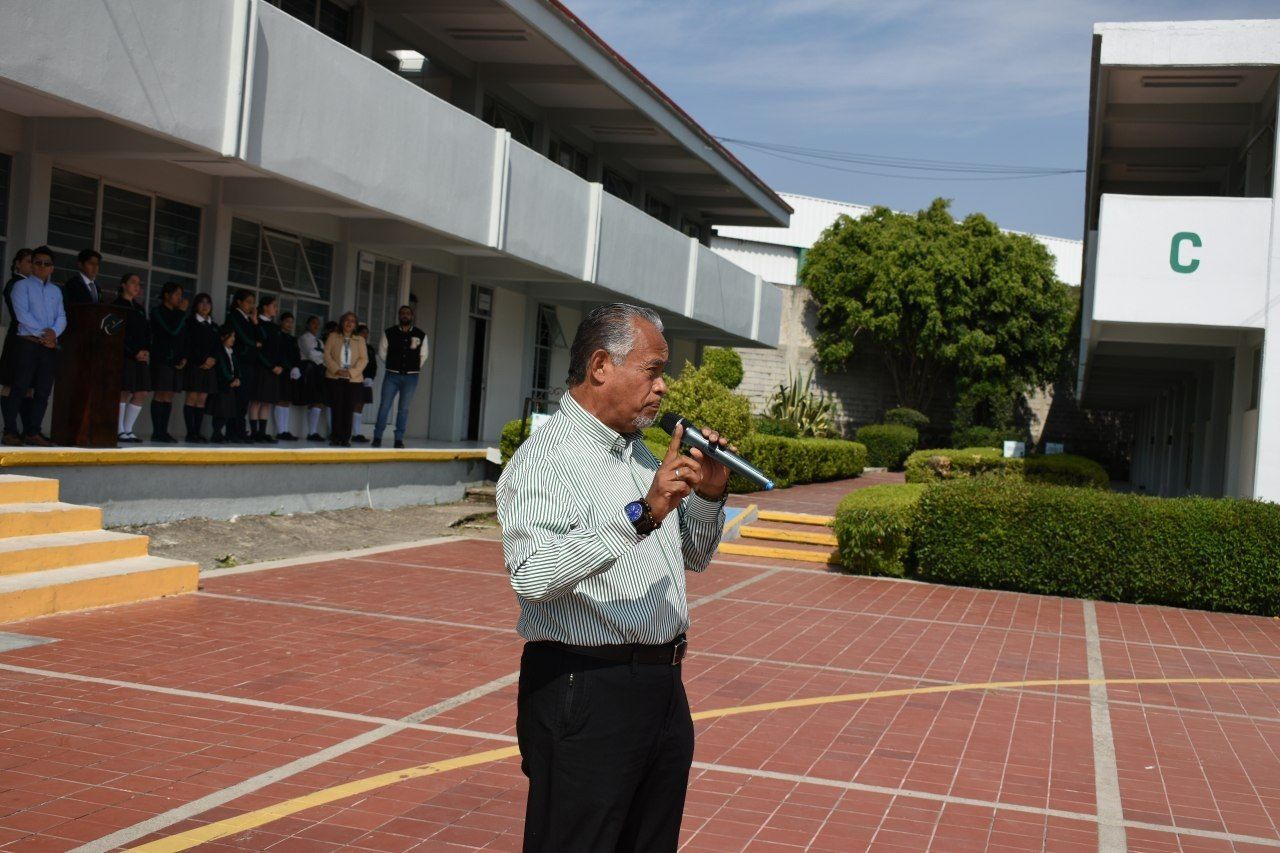 -El director general acudió al plantel Chipilo donde encabezó la ceremonia de honores a la bandera.